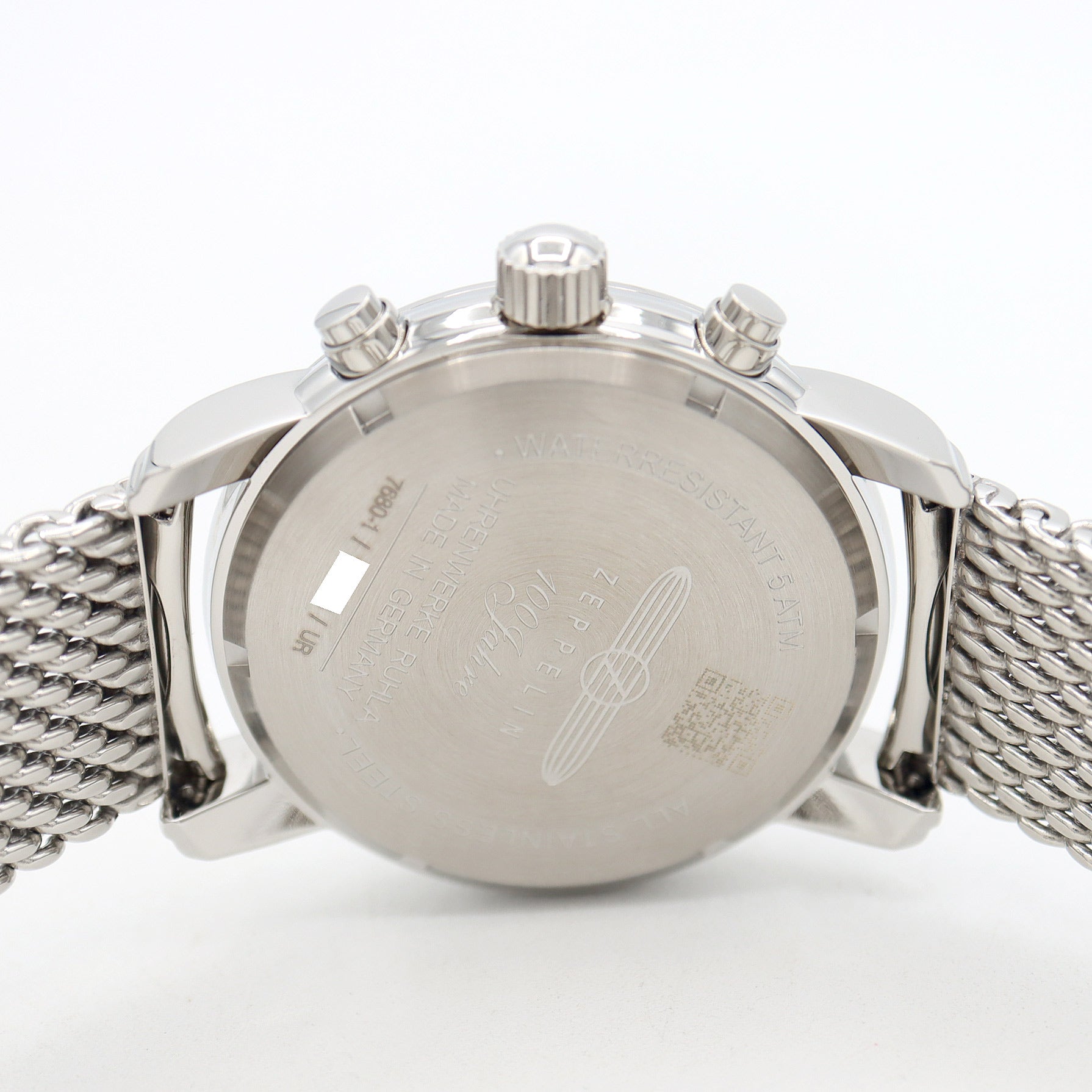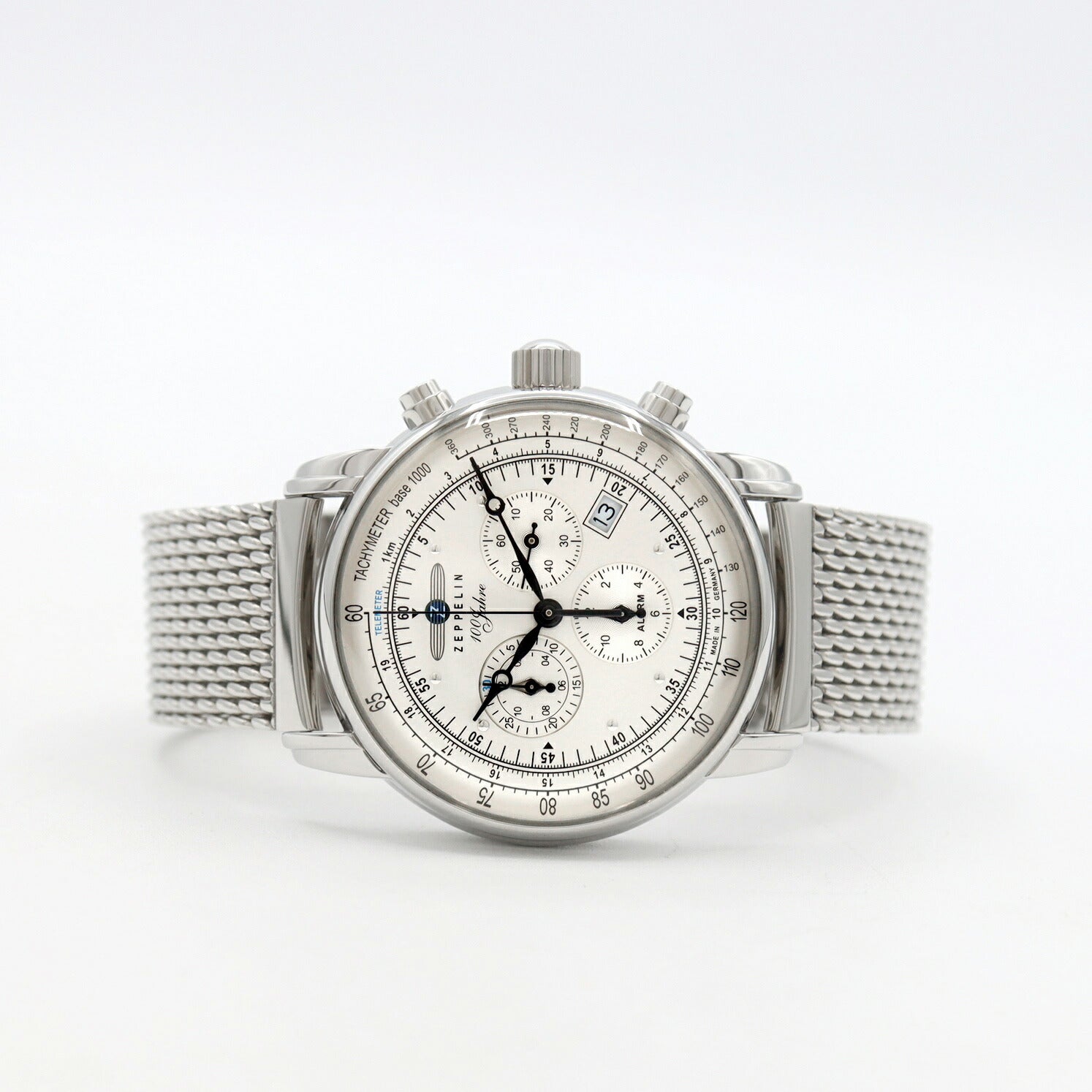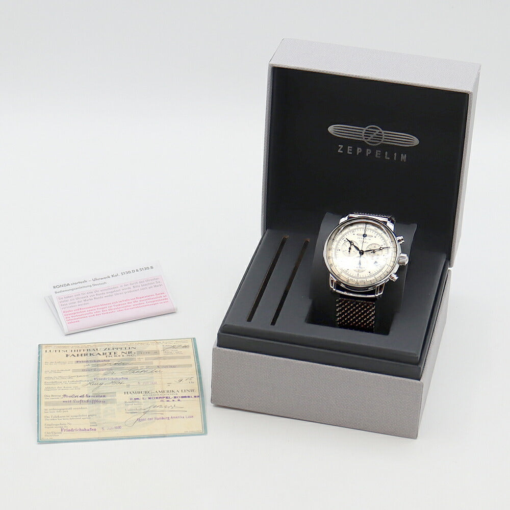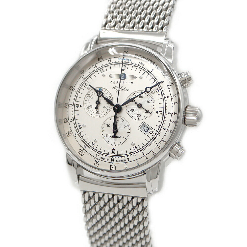 電池交換済 ZEPPELIN ツェッペリン 7680M-1 100周年記念モデル 日本限定 クロノグラフ デイト 50m防水 シルバー SS ステンレス メンズ クォーツ【6ヶ月保証】【腕時計】【中古】