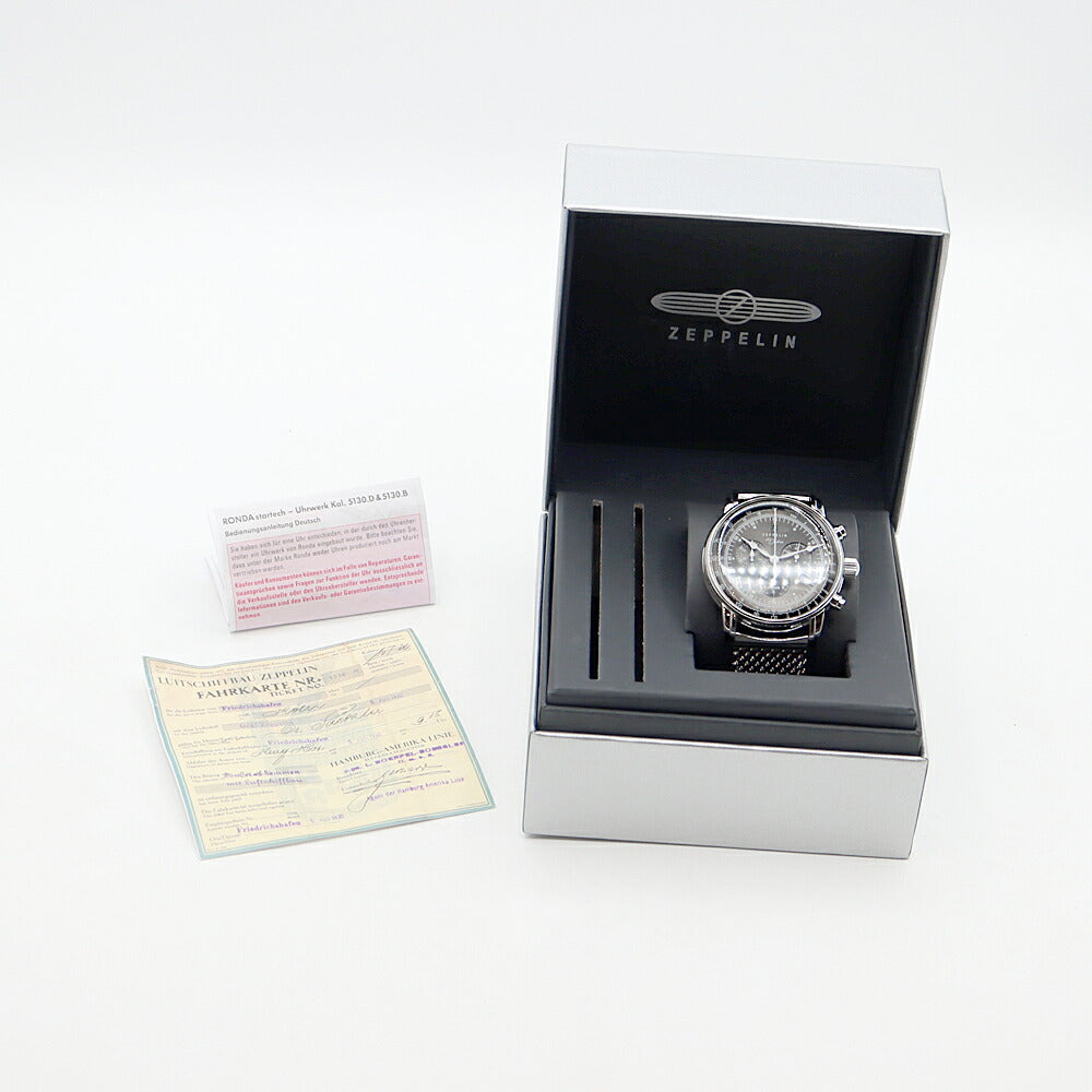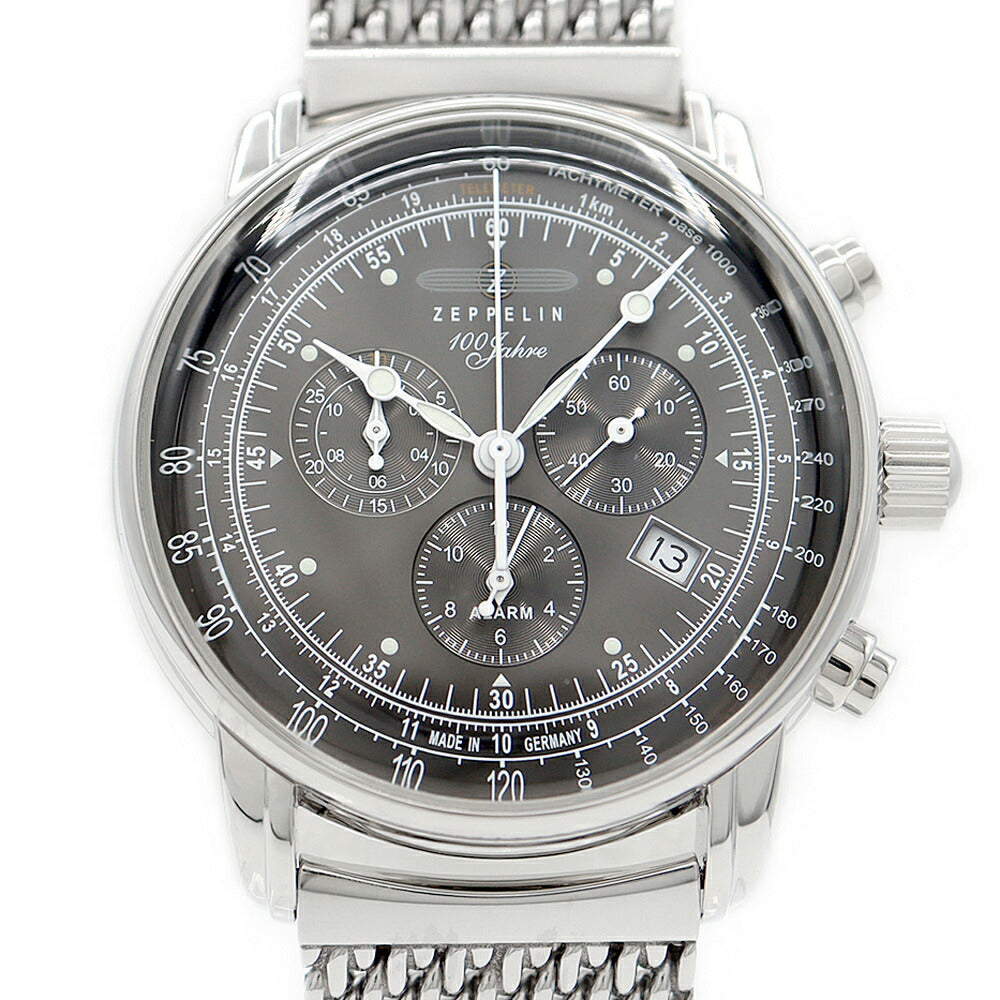 電池交換済 ZEPPELIN ツェッペリン 8680M-6 100周年記念モデル 日本限定 クロノグラフ デイト 50m防水 グレー SS ステンレス メンズ クォーツ【6ヶ月保証】【腕時計】【中古】