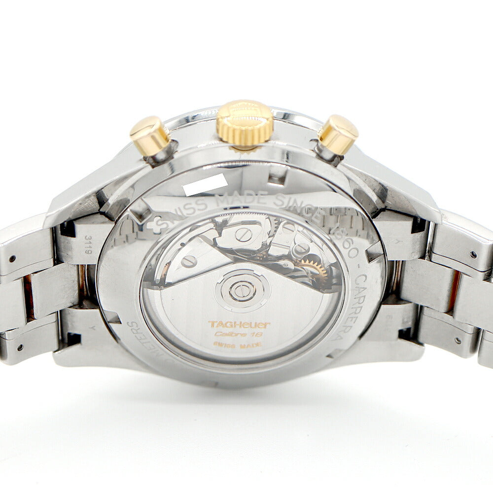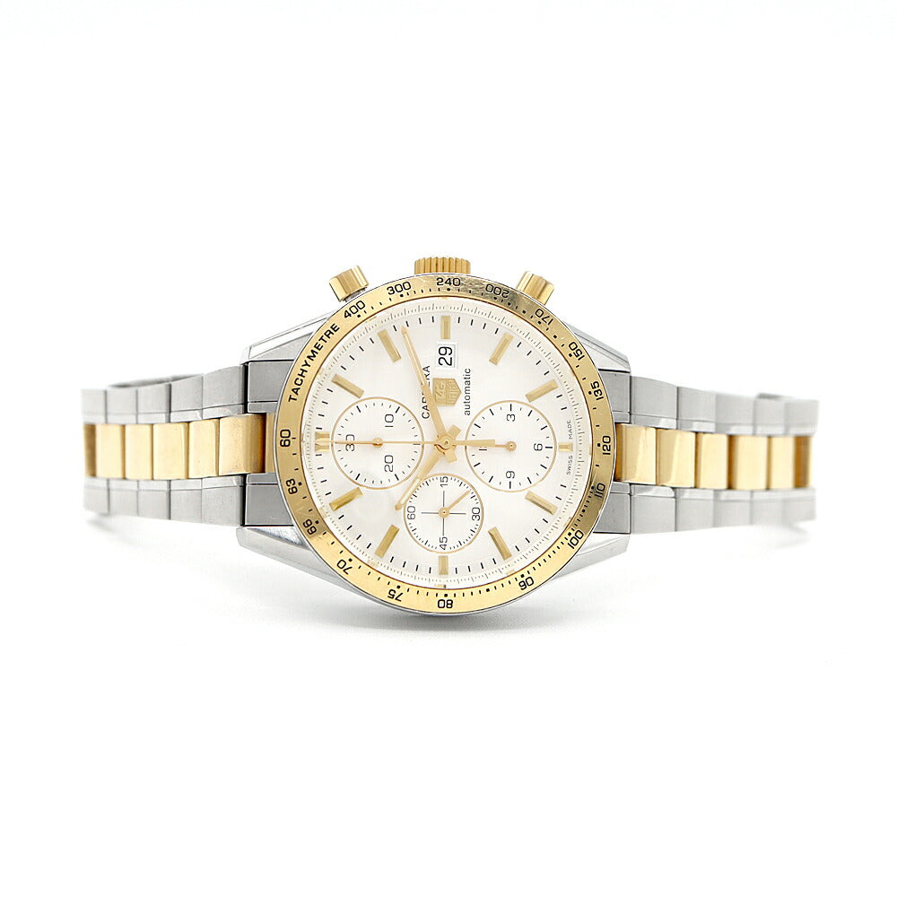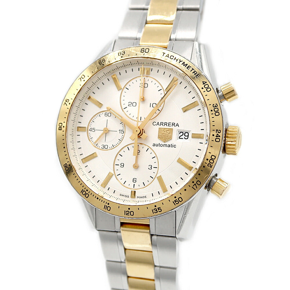 内部点検済 TAG Heuer タグホイヤー カレラ キャリバー16 クロノグラフ CV2050 BD0789 デイト スモールセコンド タキメーター 50m防水 裏スケ 白 ホワイト SS ステンレス YGP イエローゴールド コンビ メンズ 自動巻き【6ヶ月保証】【腕時計】【中古】