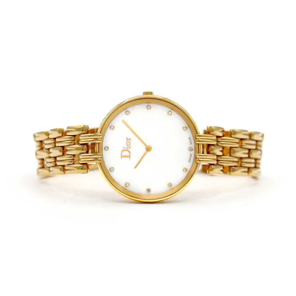 電池交換済 Christian Dior クリスチャンディオール バギラ ラージ CD094180 12Pダイヤ ダイヤモンド 白 ホワイトシェル YGP イエローゴールド メンズ クォーツ【6ヶ月保証】【腕時計】【中古】