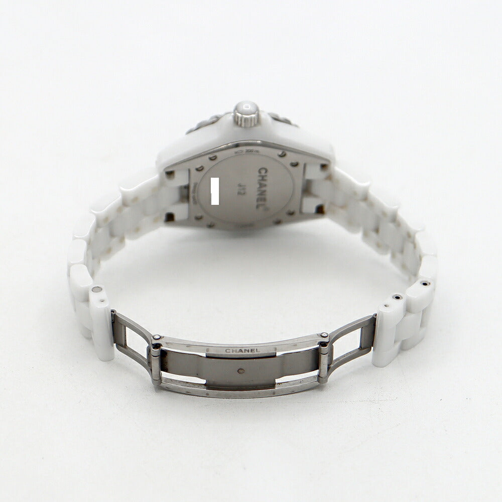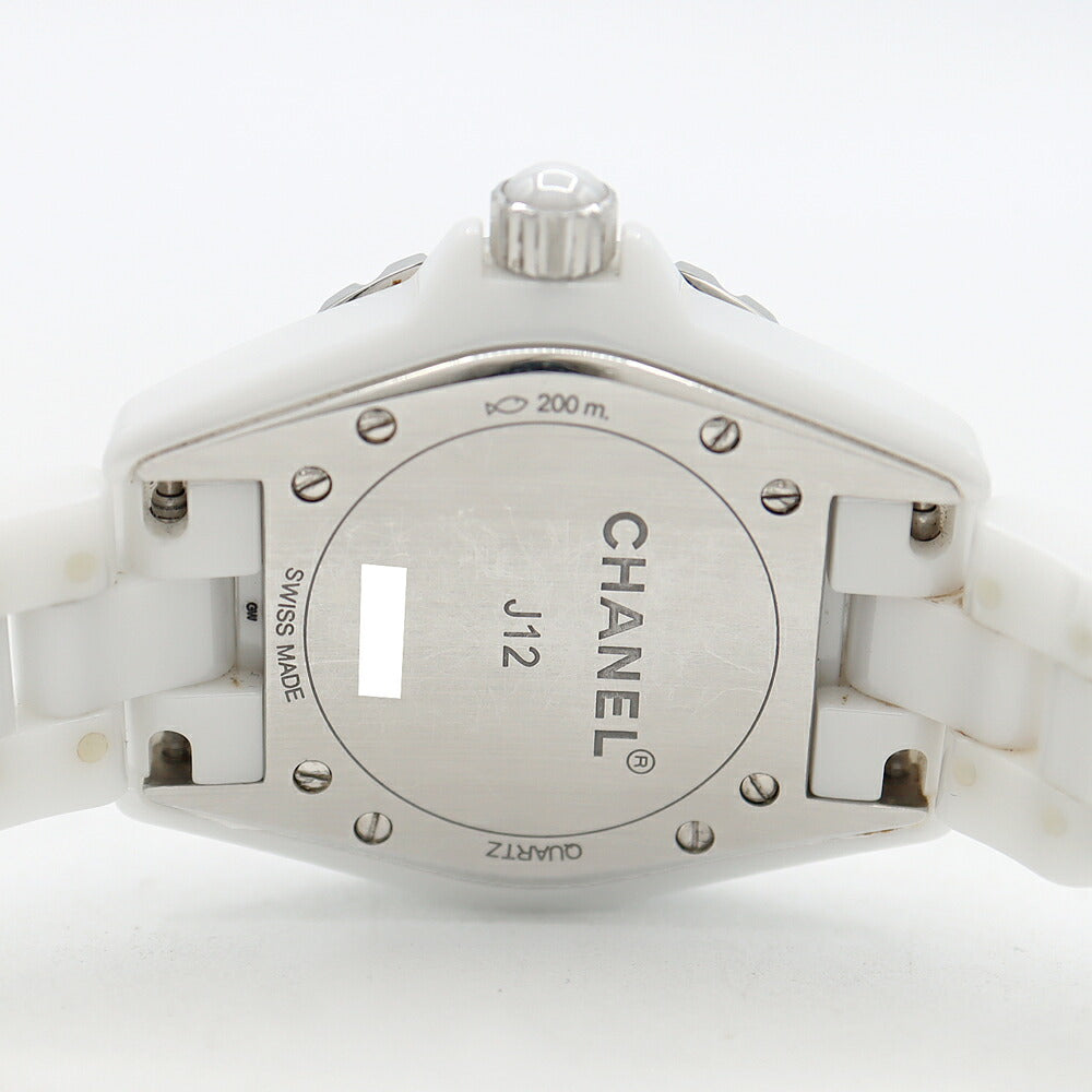 電池交換済 CHANEL シャネル J12 33mm H1628 ダイヤモンド 12Pダイヤ デイト 200m防水 白 ホワイト SS ステンレス CE セラミック レディース クォーツ【6ヶ月保証】【腕時計】【中古】