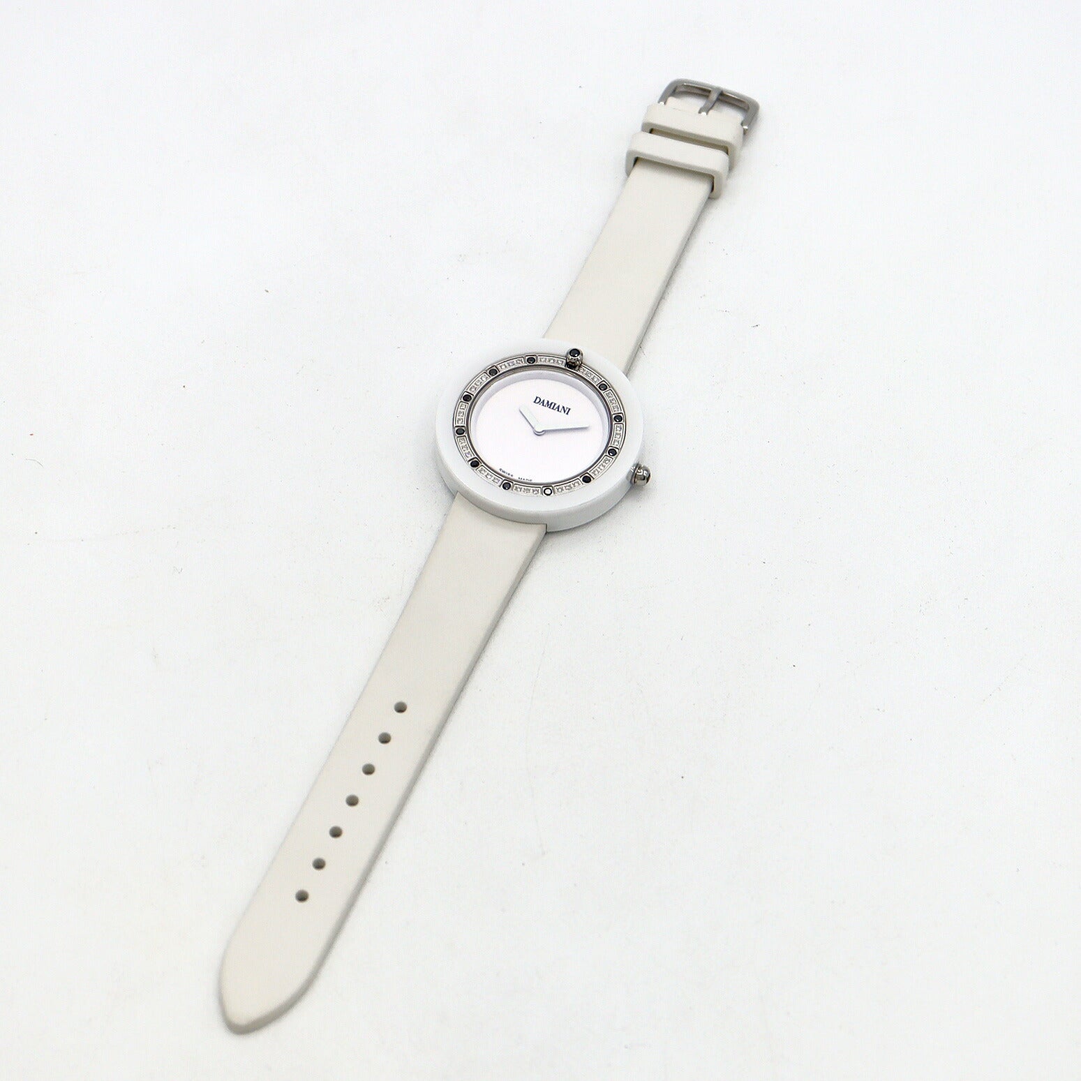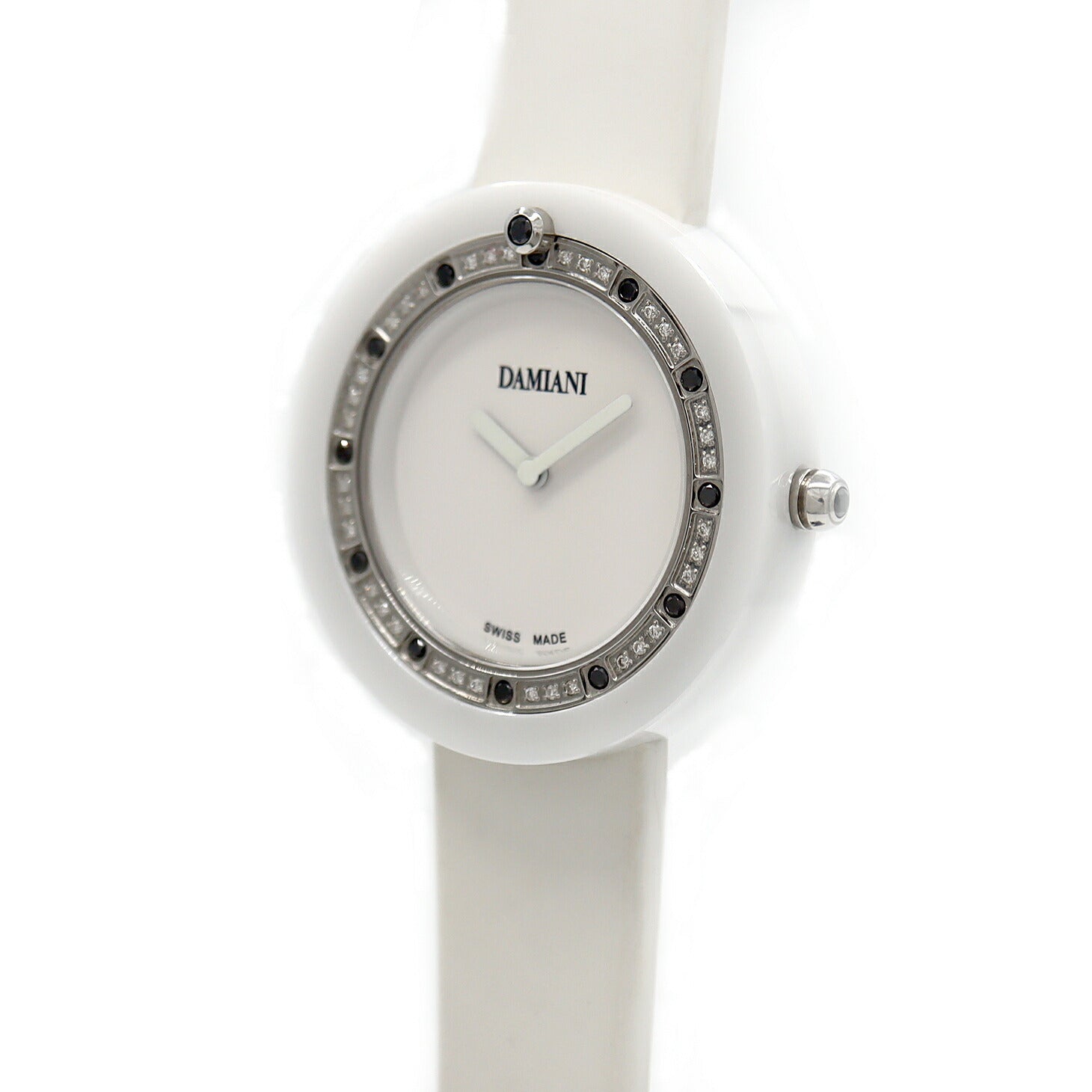 電池交換済 DAMIANI ダミアーニ ベルエポック ダイヤベゼル BCLSDW37 ダイヤモンド 白 ホワイト CE セラミック 純正ベルト 純正尾錠 レディース クォーツ【6ヶ月保証】【腕時計】【中古】