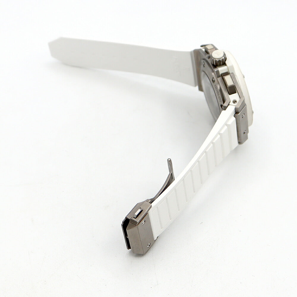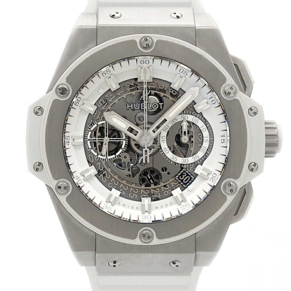 内部点検済 HUBLOT ウブロ キングパワー チタニウム クロノグラフ 701.NE.0127.GR 白 ホワイト スケルトン チタン 純正ベルト 純正尾錠 メンズ 自動巻き【6ヶ月保証】【腕時計】【中古】