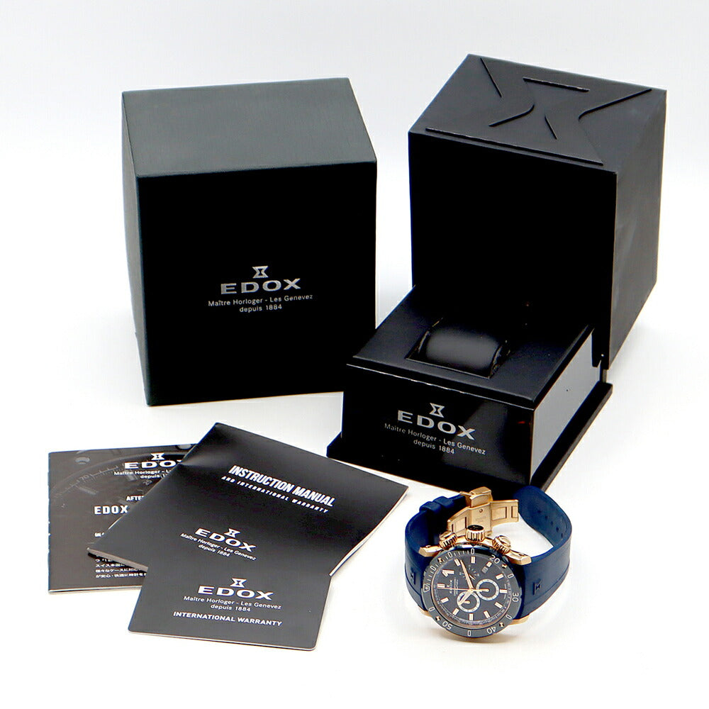 電池交換済 EDOX エドックス クロノオフショア1 10221-37RBU3-BUIR3 デイト クロノグラフ 500m防水 ブルー ネイビー PGP ピンクゴールド SS CE 純正ベルト 純正尾錠 メンズ クォーツ【6ヶ月保証】【腕時計】【中古】