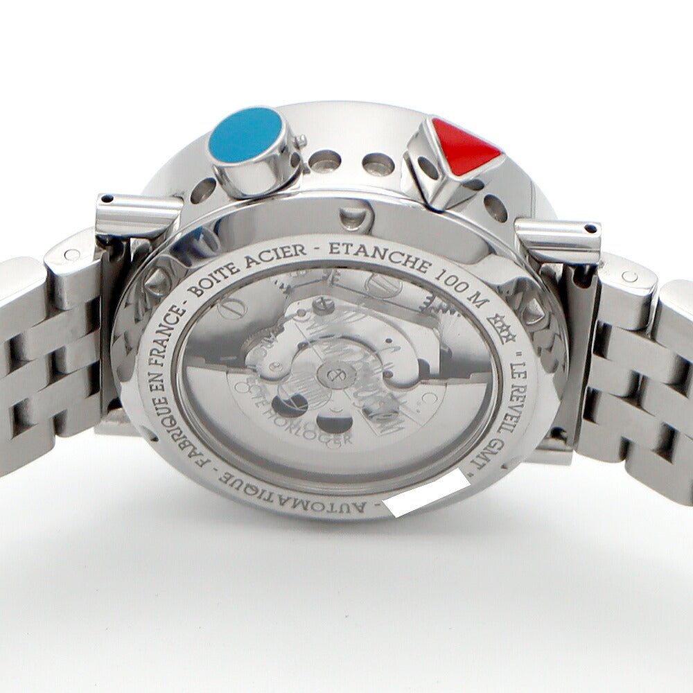 Alain Silberstein アランシルベスタイン ル レヴェイユ GMT 世界500本限定 デイト アラーム 100m防水 黒 ブラック SS ステンレス メンズ 自動巻き【6ヶ月保証】【腕時計】【中古】
