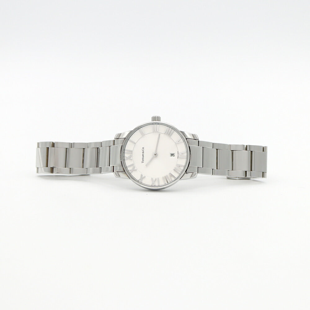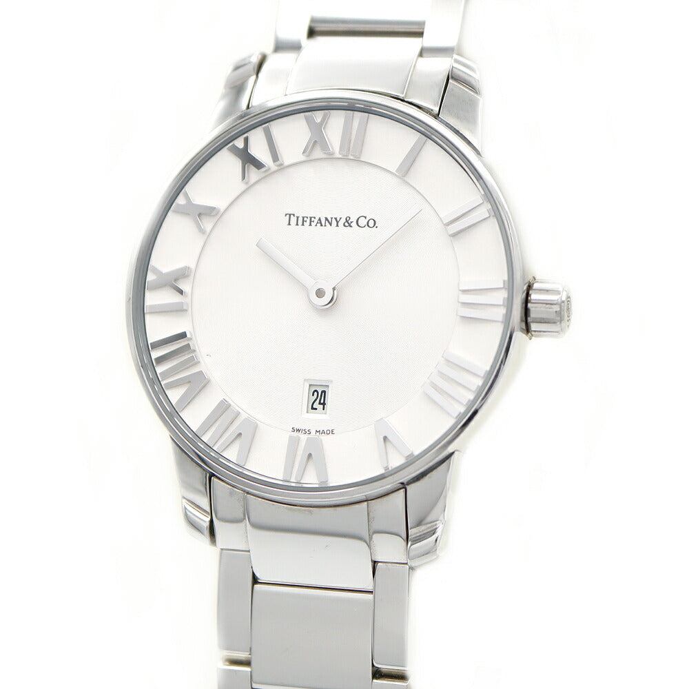 電池交換済 TIFFANY&Co. ティファニー アトラス ドーム Z1830.11.10A21A00A デイト 50m防水 白 ホワイト SS ステンレス レディース クォーツ 【6ヶ月保証】【腕時計】【中古】