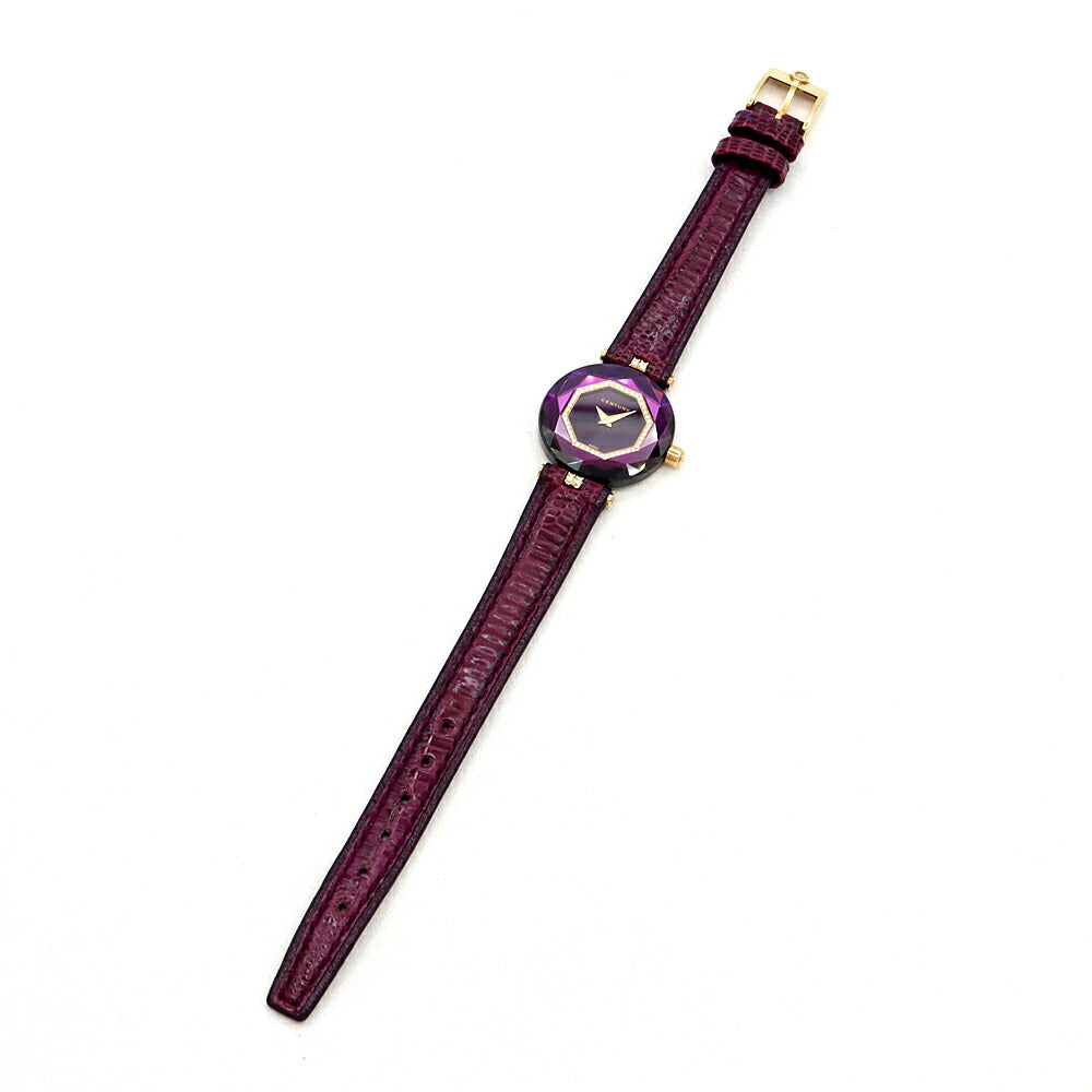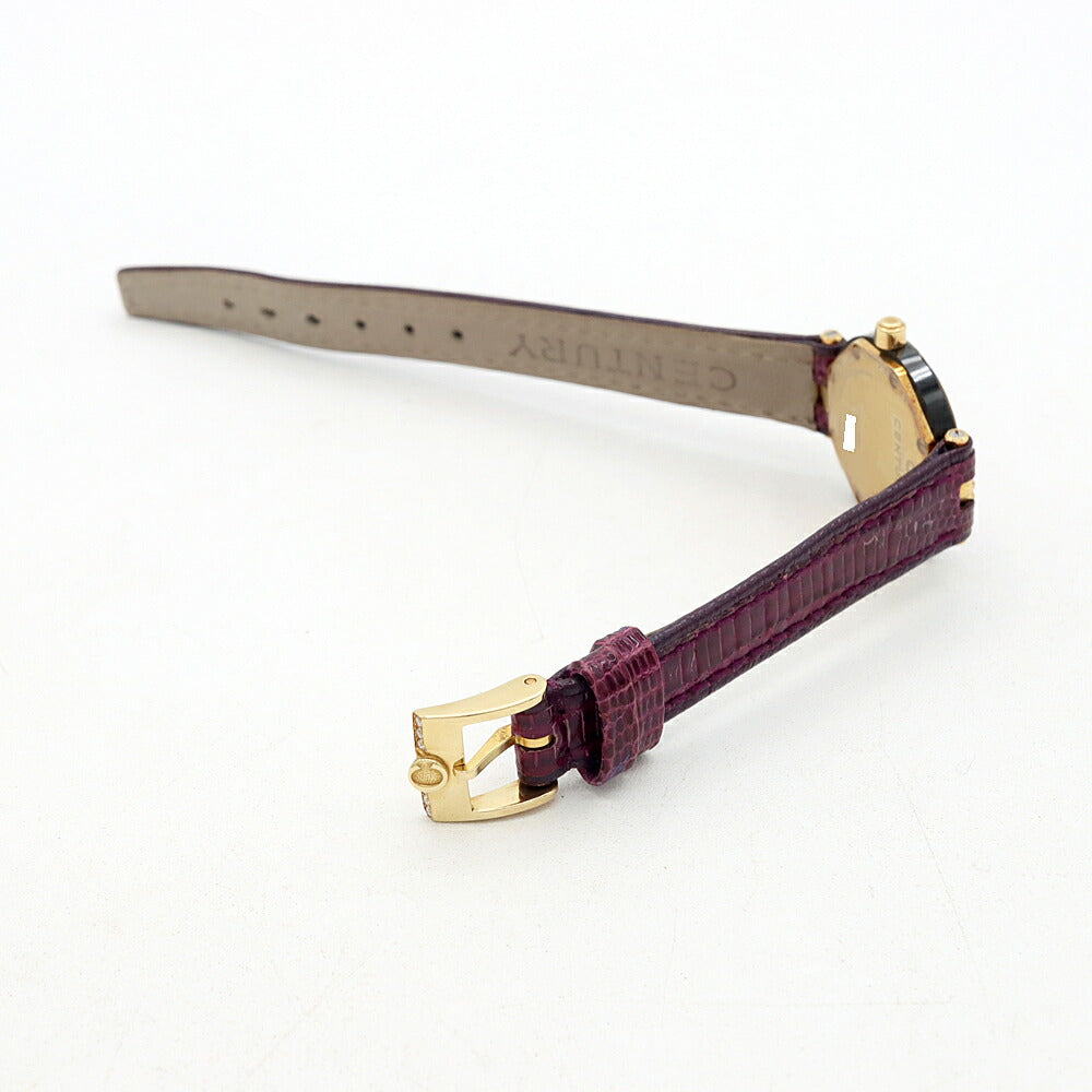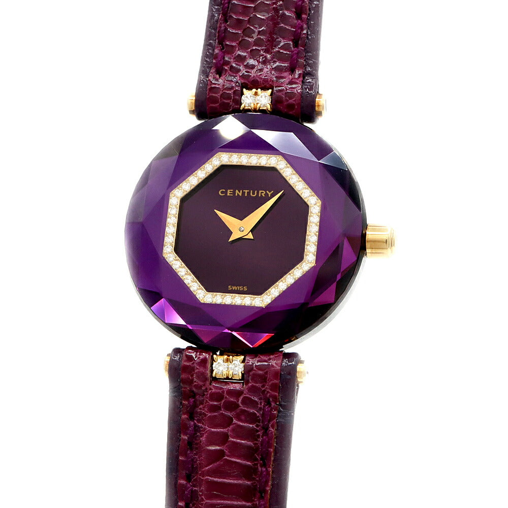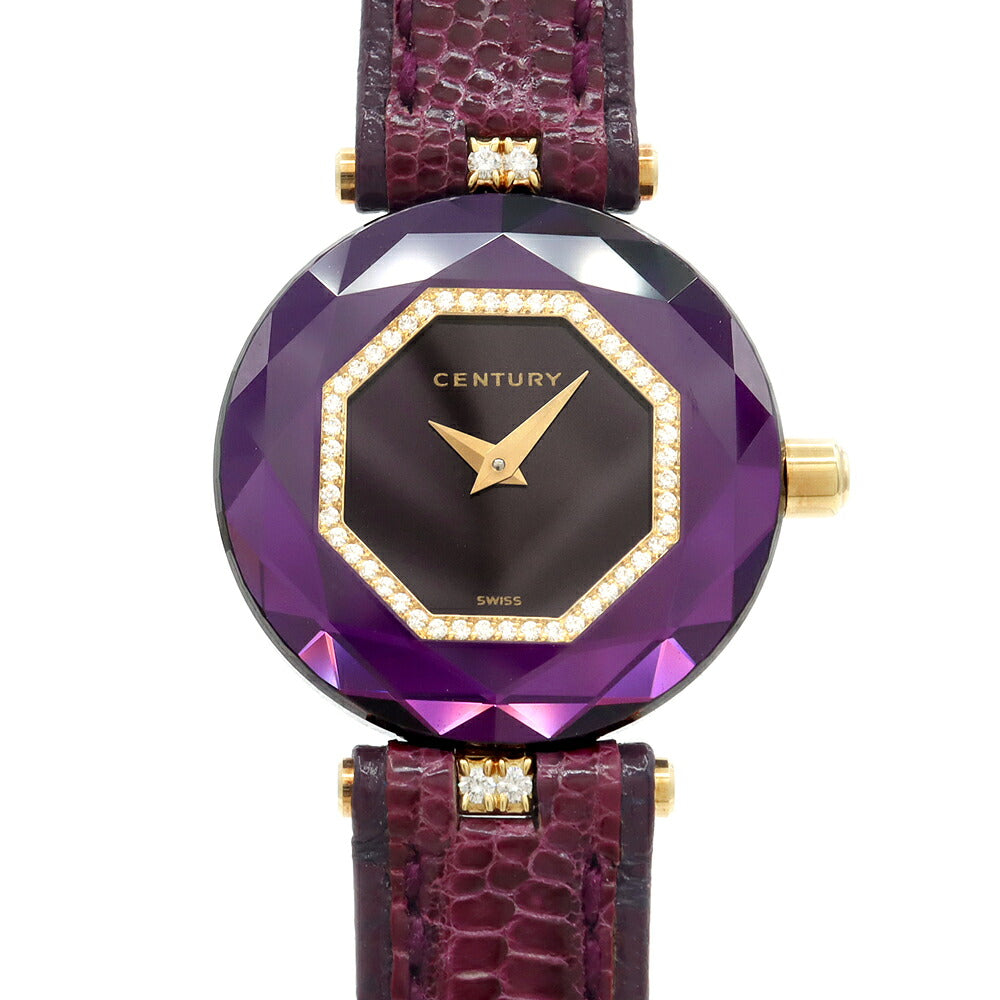 電池交換済 CENTURY センチュリー タイムジェム カットガラス ダイヤモンド 100m防水 黒 ブラック K18YG イエローゴールド 純正ベルト 純正K18YG尾錠 レディース クォーツ【6ヶ月保証】【腕時計】【中古】