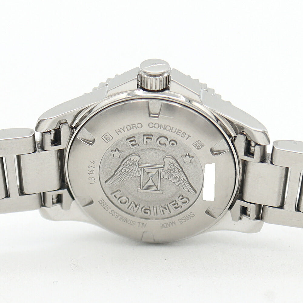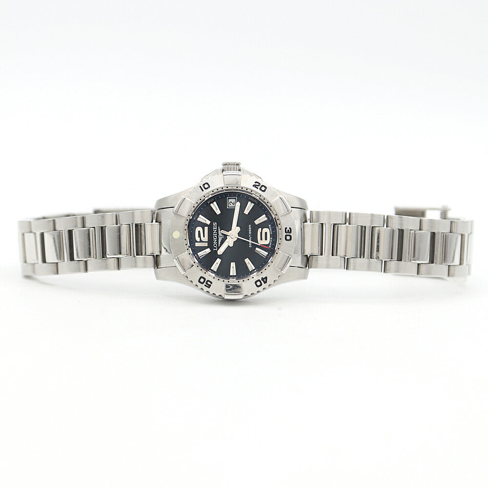 電池交換済 LONGINES ロンジン ハイドロコンクエスト L3.147.4 デイト 300m防水 黒 ブラック SS ステンレス レディース クォーツ 【6ヶ月保証】【腕時計】【中古】