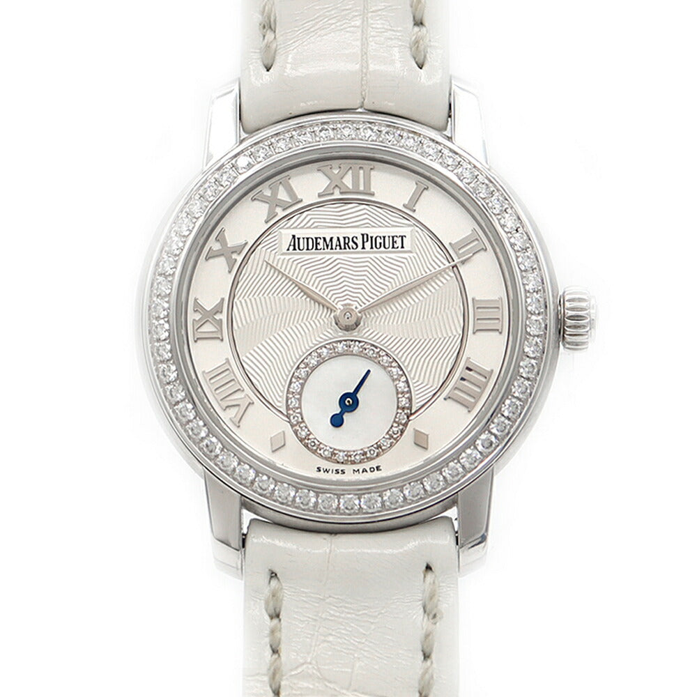 AUDEMARS PIGUET オーデマピゲ ジュールオーデマ ダイヤベゼル 77228BC.ZZ.A001MR.01 ダイヤモンド スモールセコンド 裏スケ シルバー 白 ホワイトシェル K18WG ホワイトゴールド 純正ベルト 純正尾錠 レディース 手巻き AP【6ヶ月保証】【腕時計】【中古】