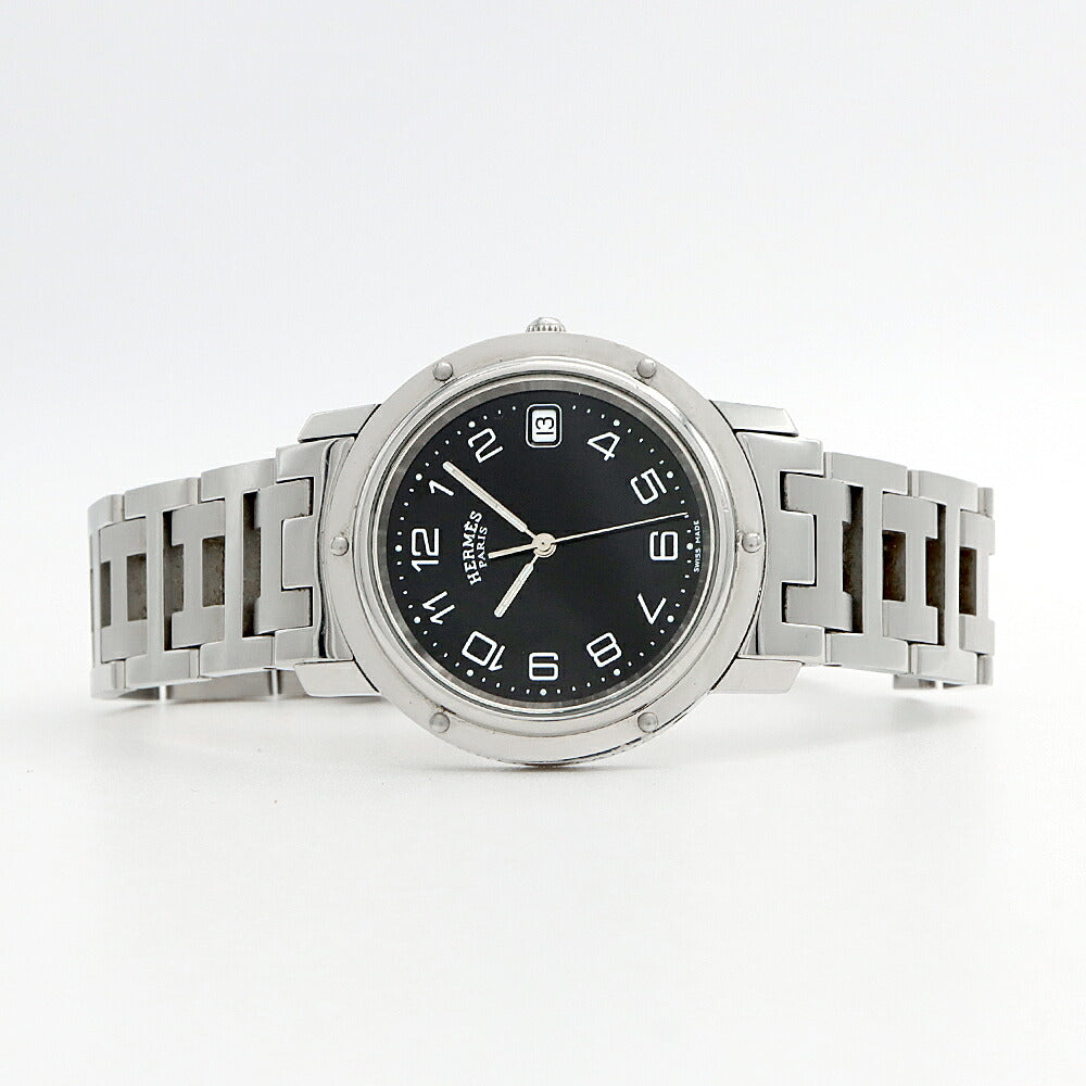 電池交換済 HERMES エルメス クリッパー CL6.710 デイト 30m防水 黒 ブラック SS ステンレス メンズ クォーツ【6ヶ月保証】【腕時計】【中古】