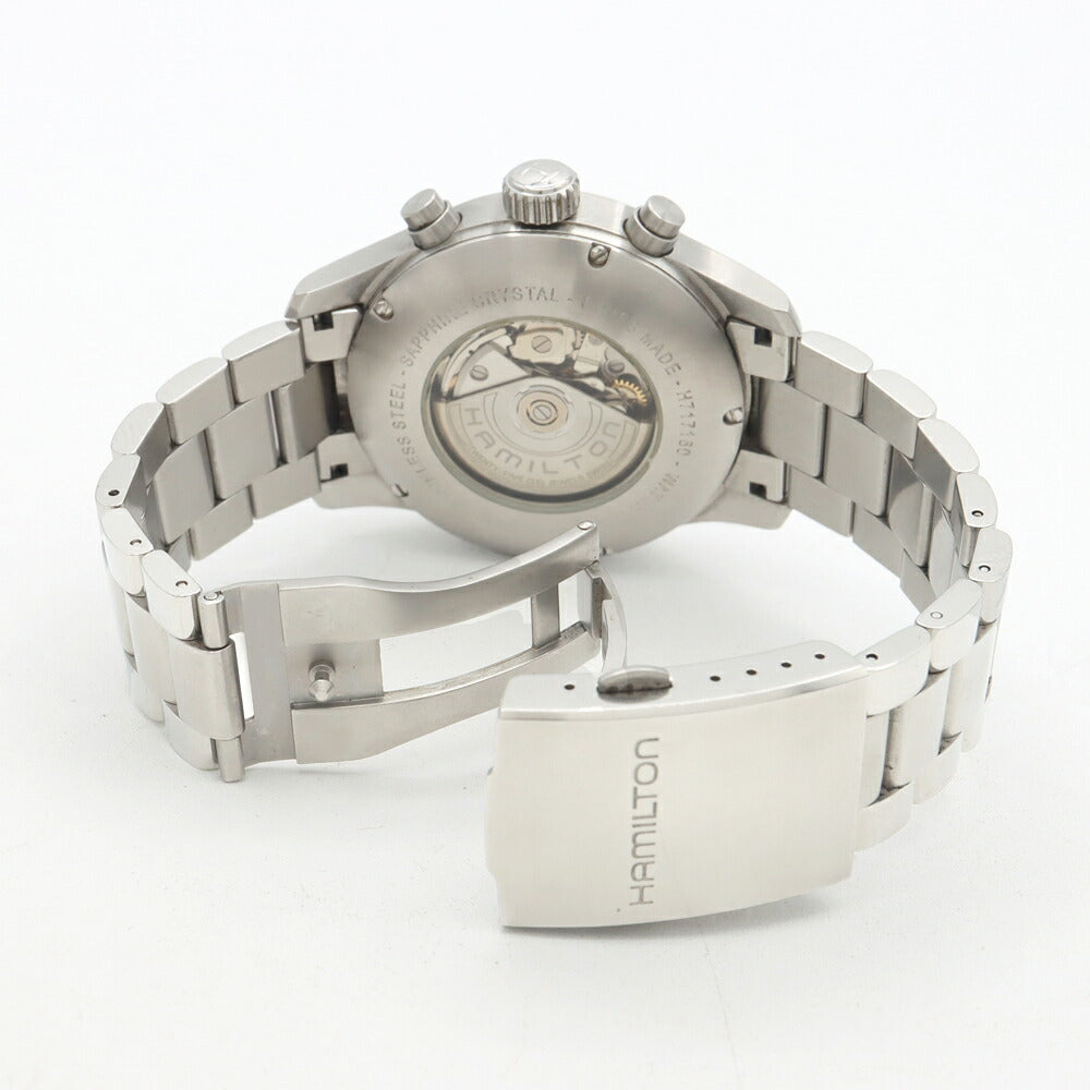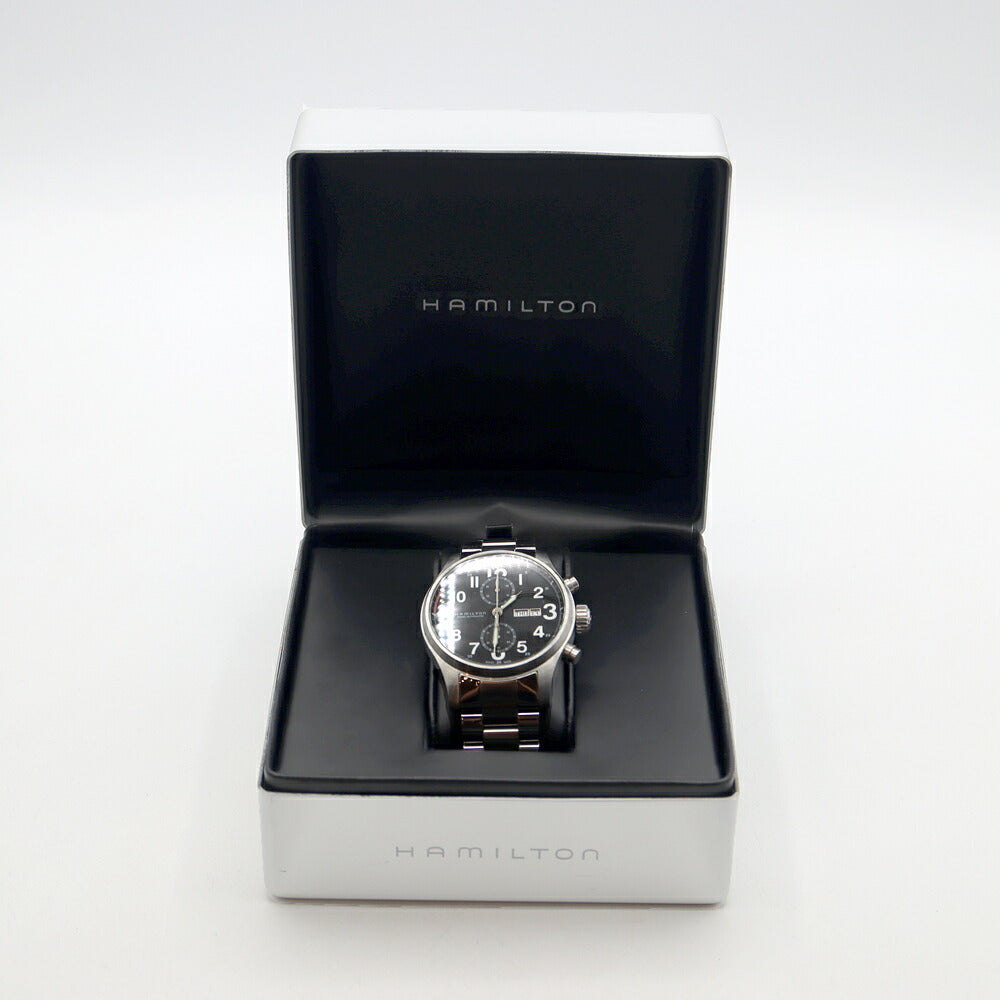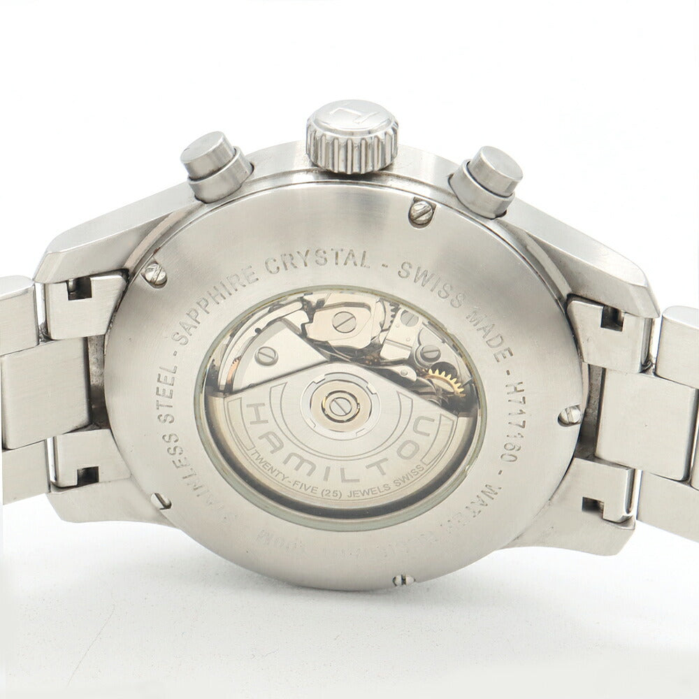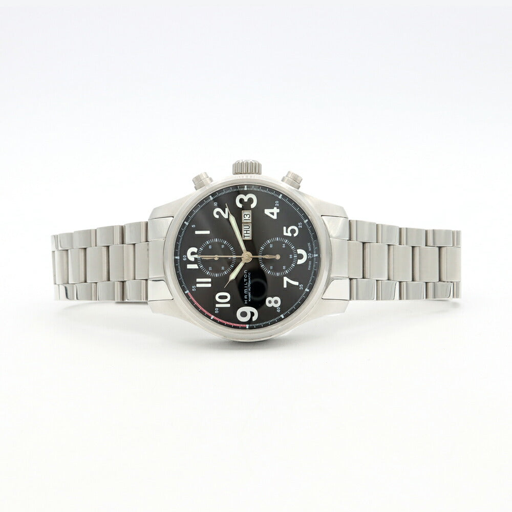 HAMILTON ハミルトン カーキ オフィサー クロノ H717160 クロノグラフ デイデイト 裏スケ 100m防水 黒 ブラック SS ステンレス メンズ 自動巻き【6ヶ月保証】【腕時計】【中古】