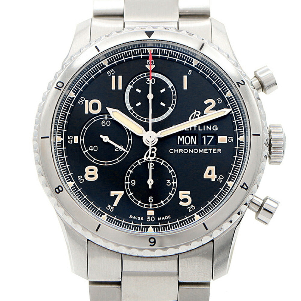 BREITLING ブライトリング アビエーター8 クロノグラフ43 A13316 デイデイト 100m防水 黒 ブラック SS ステンレス メンズ 自動巻き【6ヶ月保証】【腕時計】【中古】
