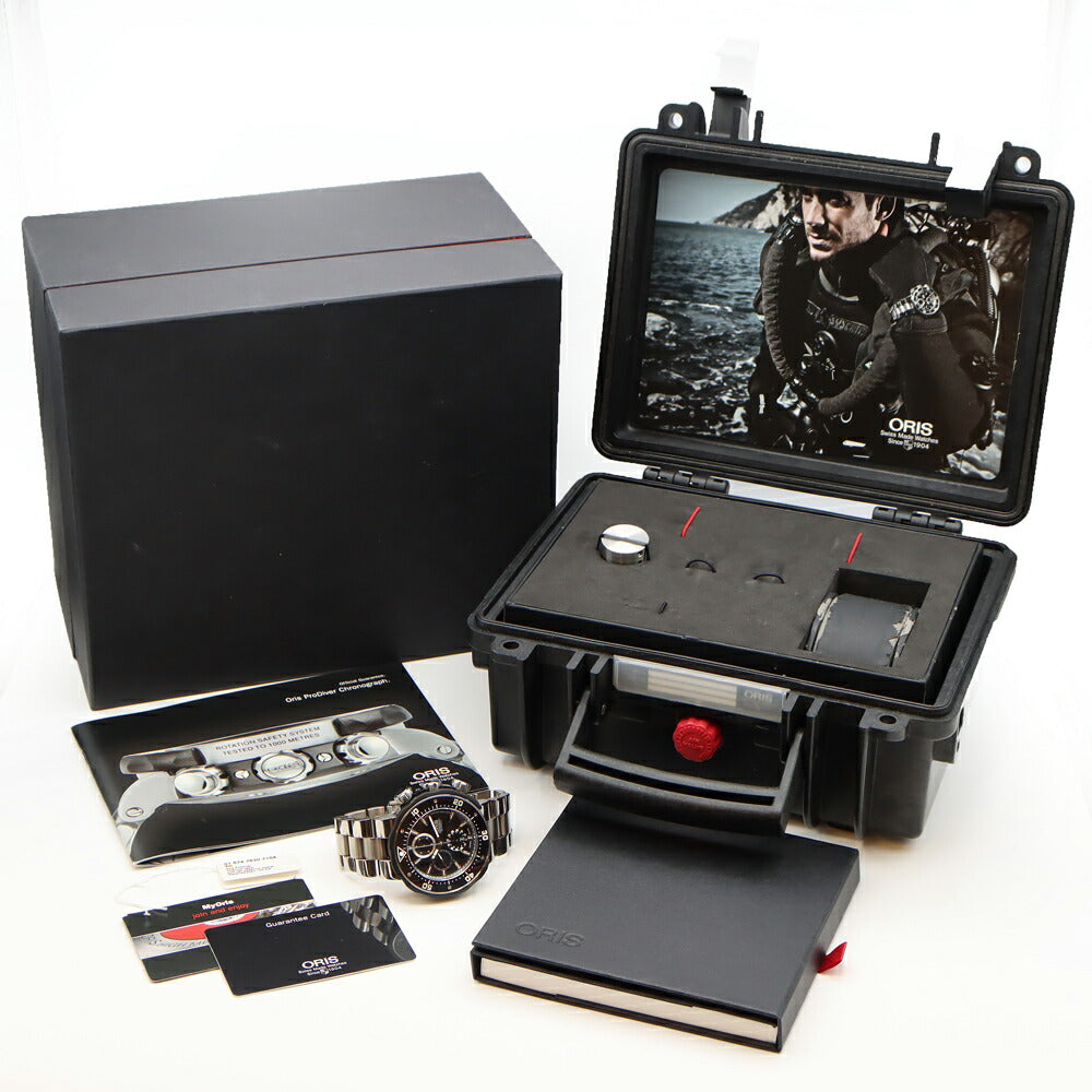 ORIS オリス プロダイバー クロノグラフ 01 674 7630 7154-Set 1000m防水 デイト 黒 ブラック Ti チタン CE セラミック メンズ 自動巻き【6ヶ月保証】【腕時計】【中古】
