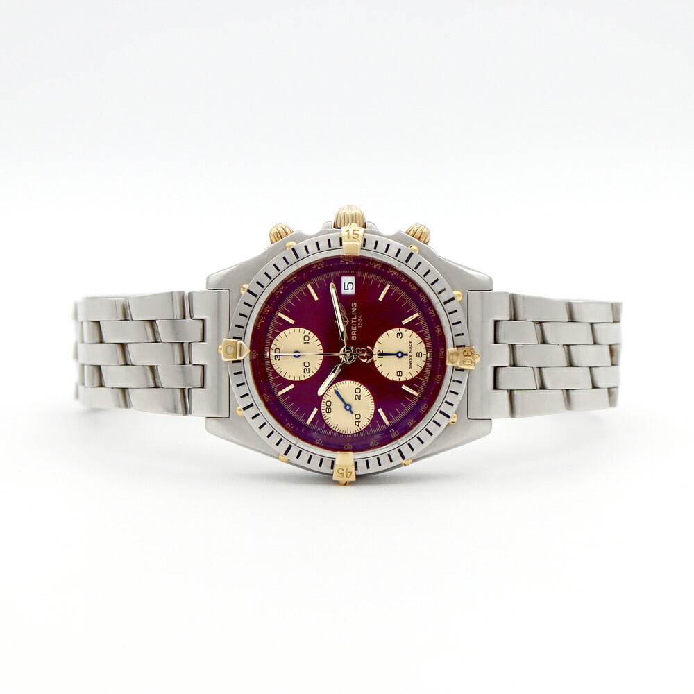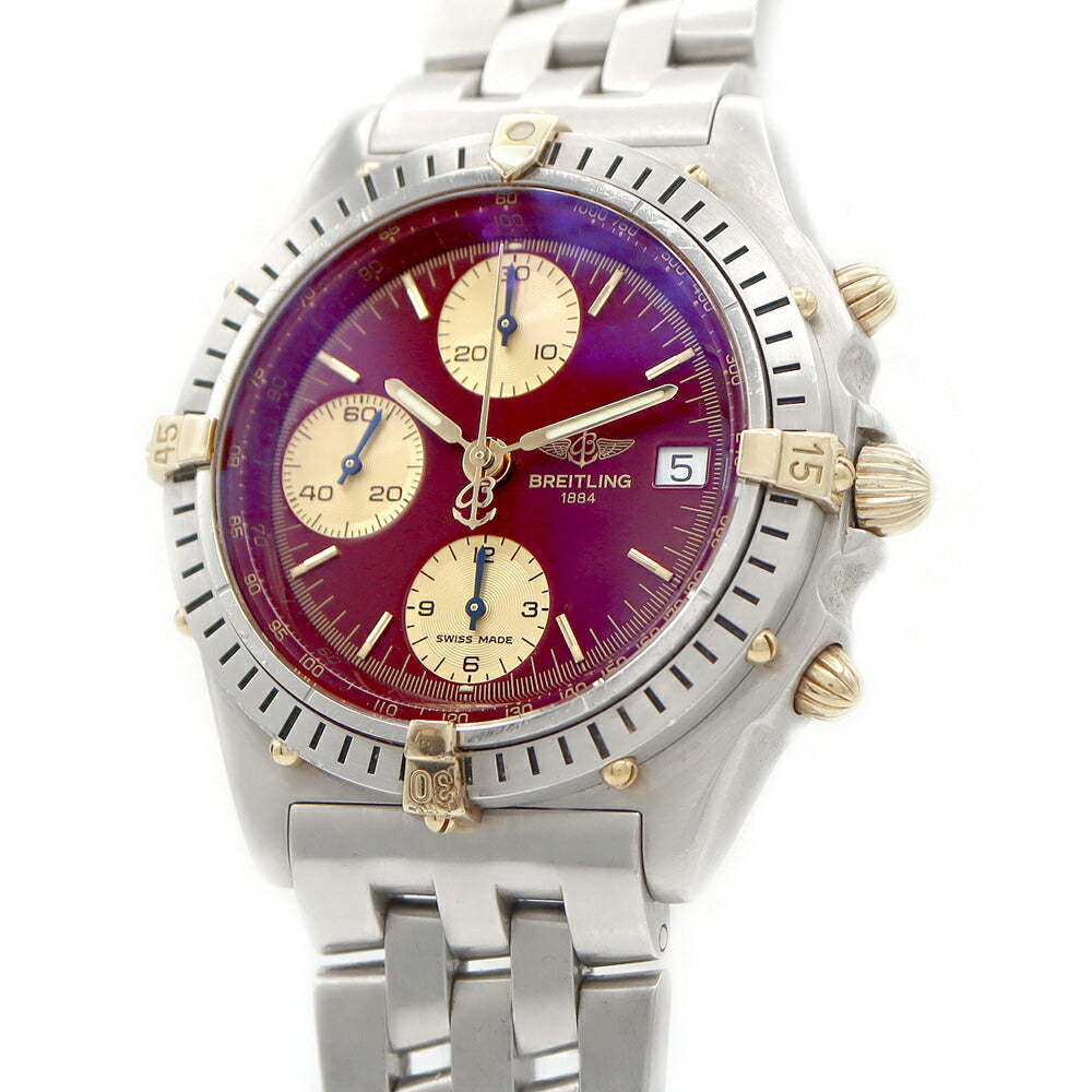 内部点検済 BREITLING ブライトリング クロノマット ビコロ B13050 クロノグラフ デイト 100m防水 赤 ワインレッド SS ステンレス YG イエローゴールド コンビ メンズ 自動巻き【6ヶ月保証】【腕時計】【中古】