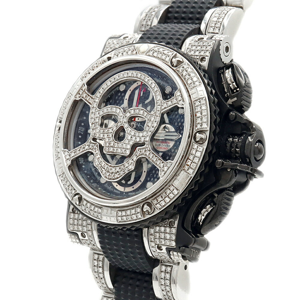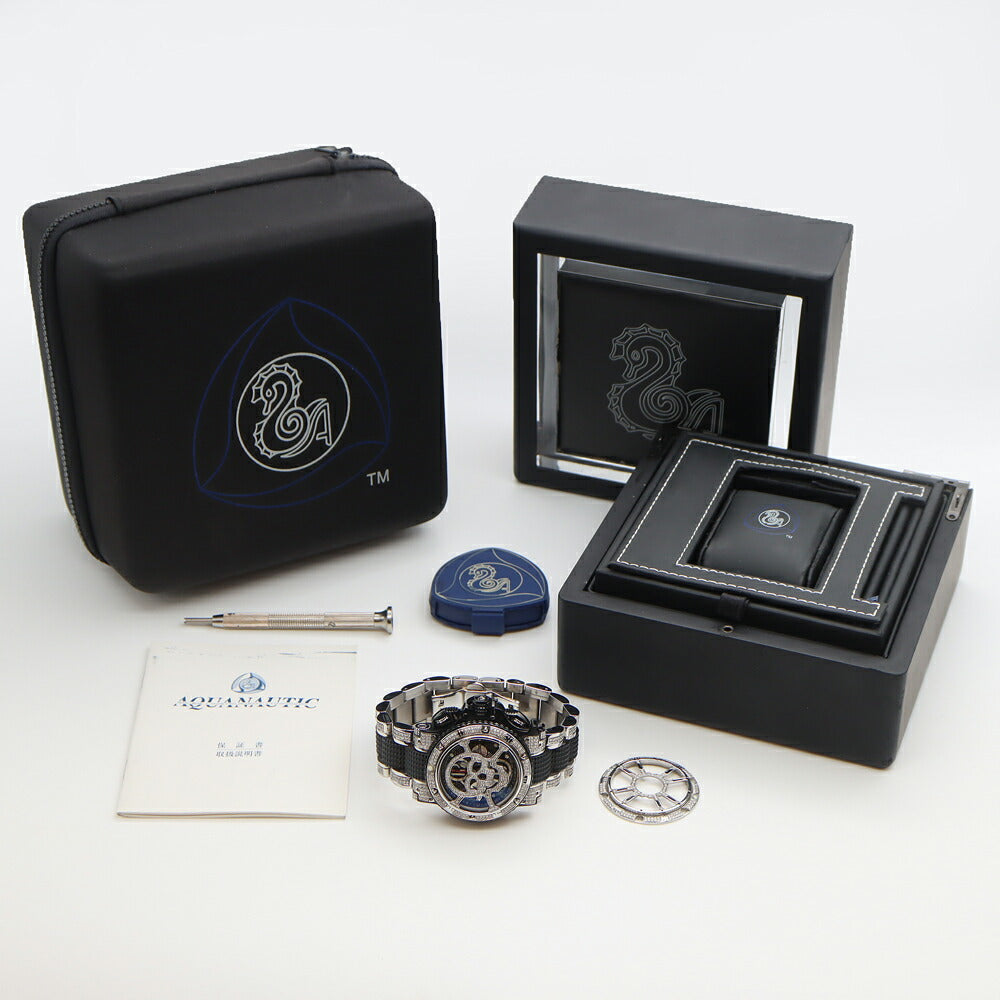 AQUANAUTIC アクアノウティック サブコマンダー クロノ KRP32NGRFDMT02SH ダイヤモンド ダイヤスカルマスク ダイヤベルト クロノグラフ デイデイト 裏スケ 黒 ブラック SS ステンレス メンズ 自動巻き 【6ヶ月保証】【腕時計】【中古】