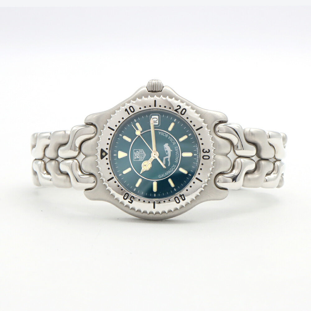 電池交換済 TAG Heuer タグホイヤー ガラパゴス モルディブ ボラボラ 2000本限定 WG111K デイト 200m防水 エメラルドグリーン SS ステンレス メンズ クォーツ【6ヶ月保証】【腕時計】【中古】