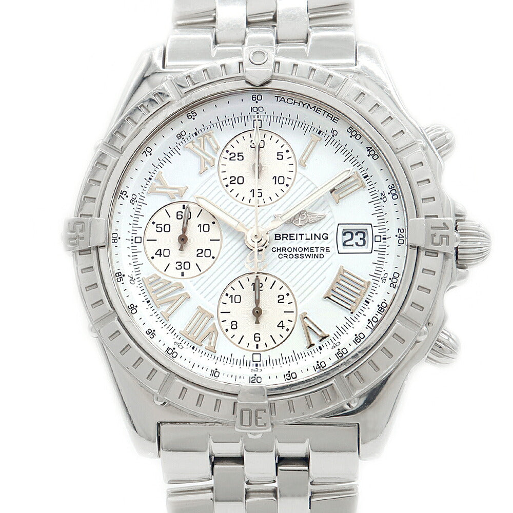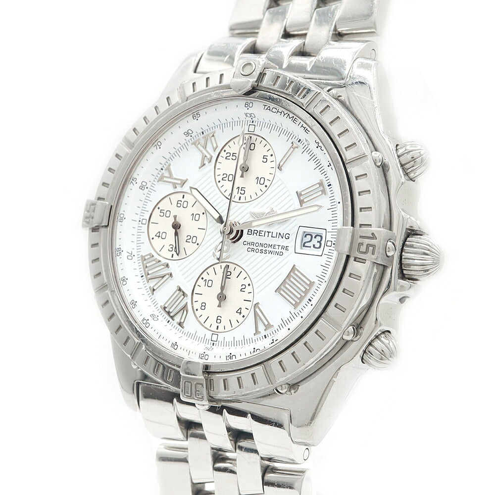 内部点検済 BREITLING ブライトリング クロスウィンド A13355 クロノグラフ 100m防水 デイト 白 ホワイト SS ステンレス メンズ 自動巻き【6ヶ月保証】【腕時計】【中古】