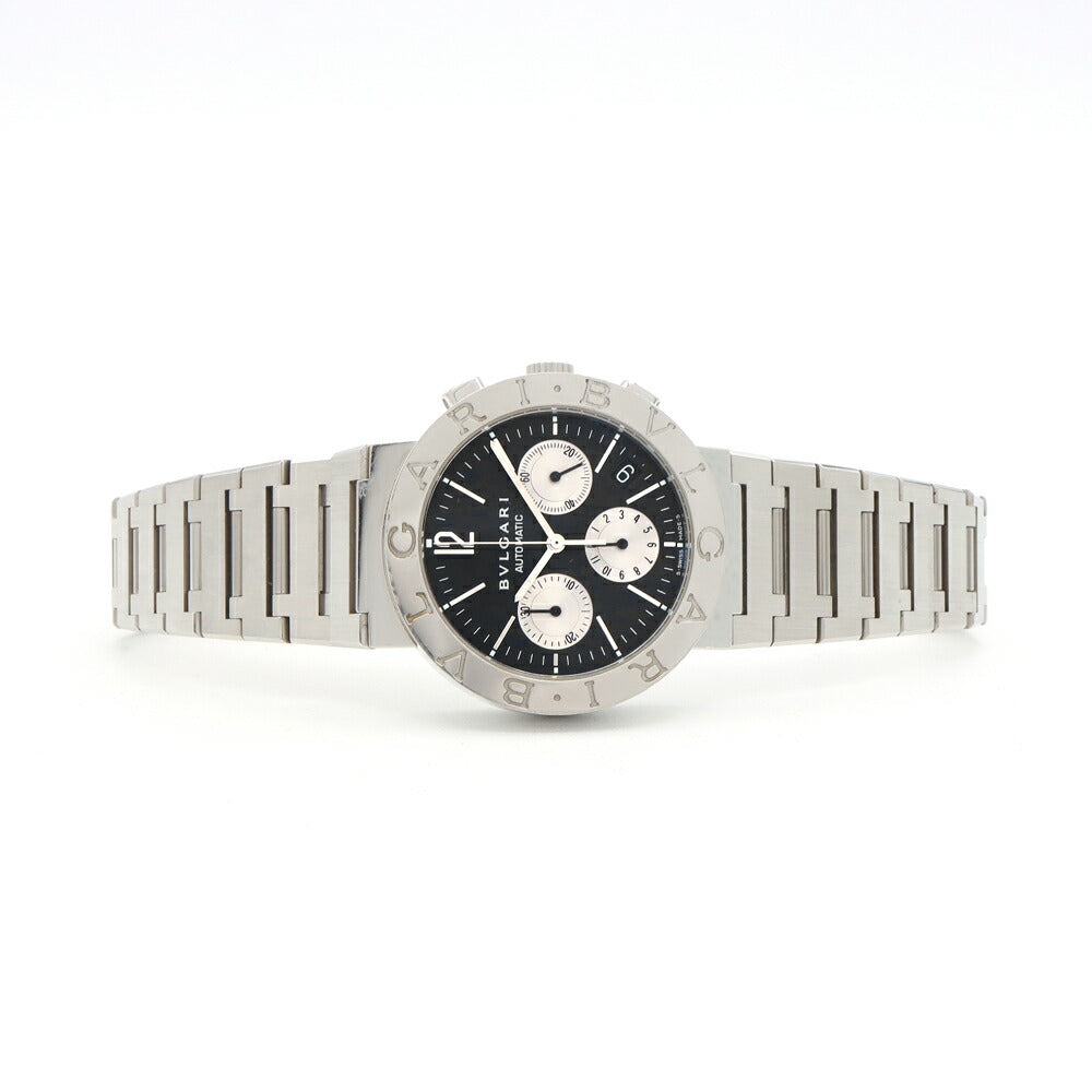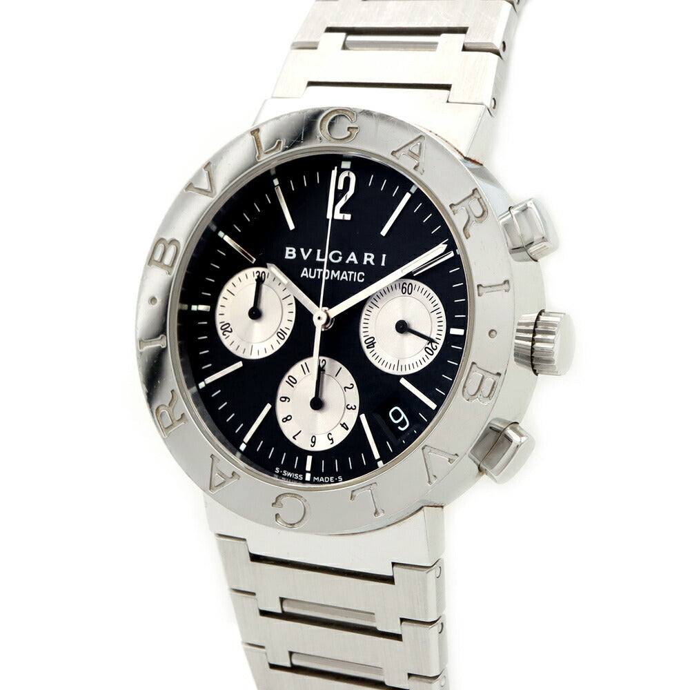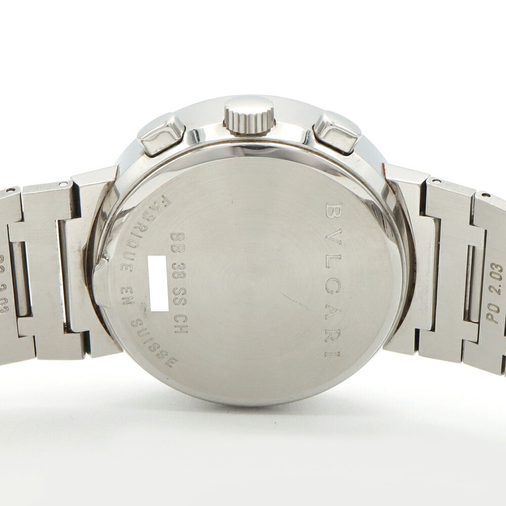 内部点検済 BVLGARI ブルガリ ブルガリブルガリ クロノグラフ BB38SSCH デイト 30m防水 黒 ブラック SS ステンレス メンズ 自動巻き【6ヶ月保証】【腕時計】【中古】
