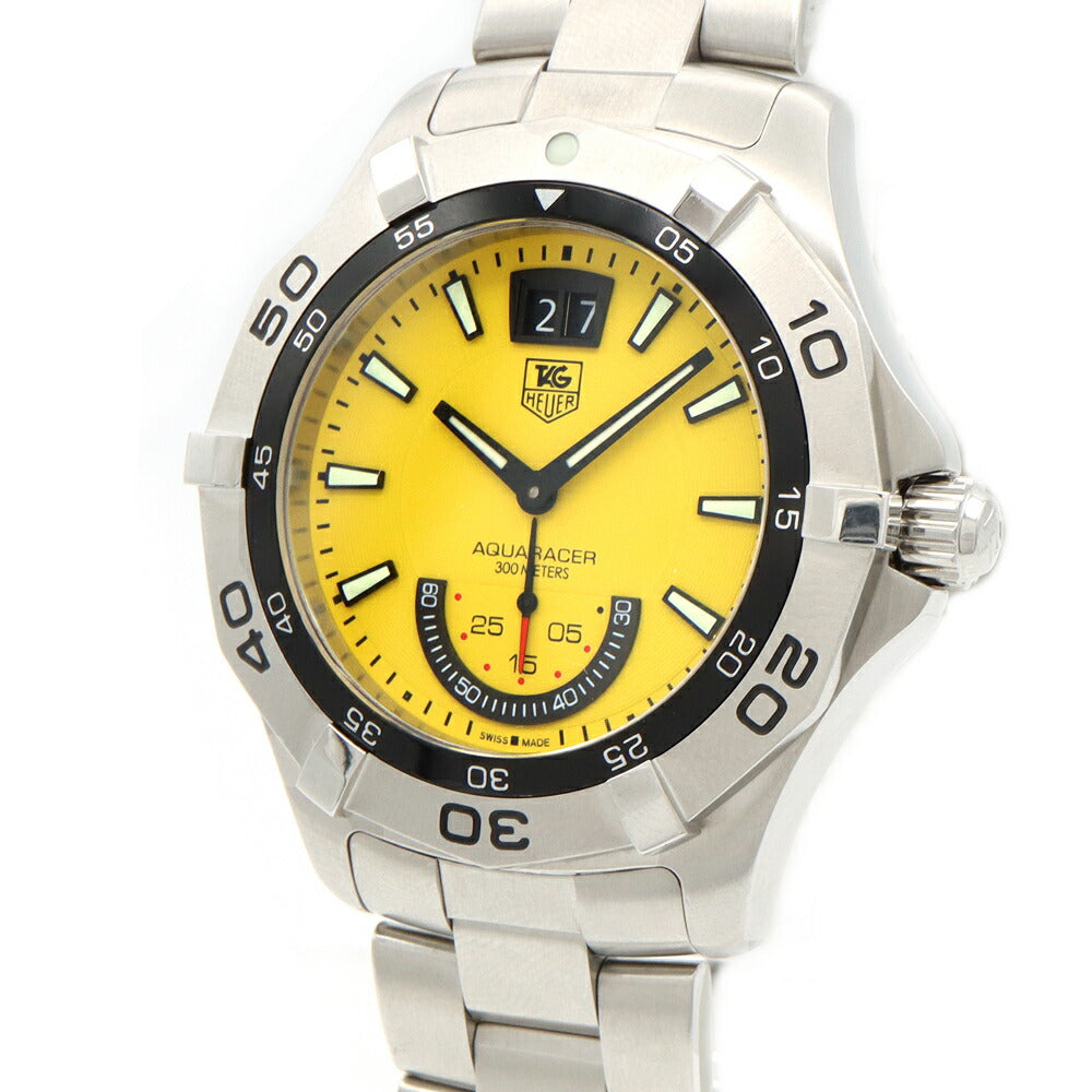 電池交換済 TAG Heuer タグホイヤー アクアレーサー グランドデイト WAF1012 スモールセコンド 300m防水 黄 イエロー SS ステンレス メンズ クォーツ【6ヶ月保証】【腕時計】【中古】