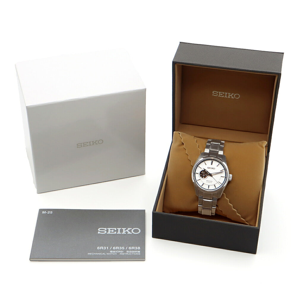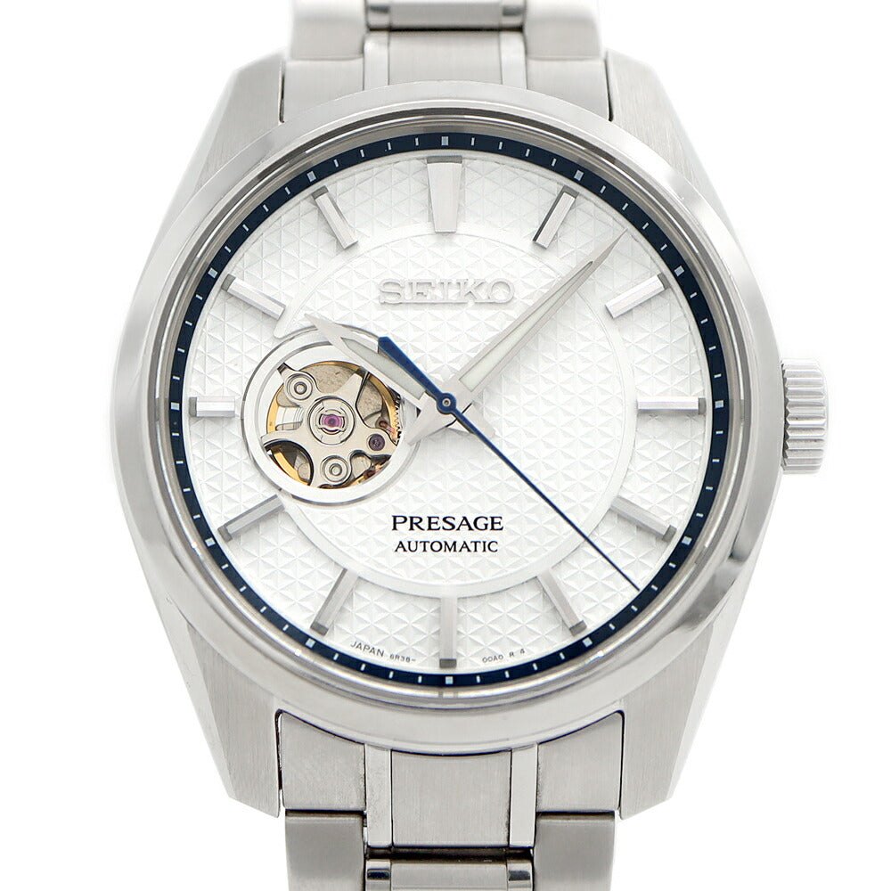 SEIKO セイコー プレザージュ シャープエッジシリーズ 6R38-00A0 SARX097 オープンハート 100m防水 裏スケ 白練 シルバー SS ステンレス メンズ 自動巻き プレサージュ【6ヶ月保証】【腕時計】【中古】