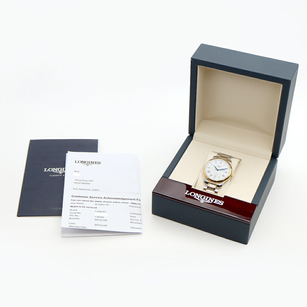 LONGINES ロンジン マスターコレクション L2.628.5 デイト 30m防水 裏スケ 白 ホワイト YG イエローゴールド SS ステンレス コンビ メンズ 自動巻き【6ヶ月保証】【腕時計】【中古】