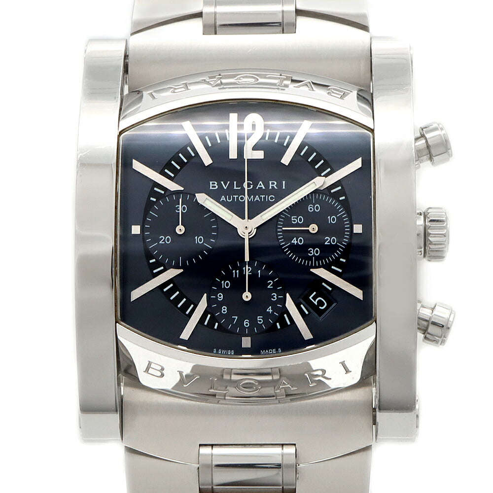 BVLGARI ブルガリ アショーマ クロノグラフ AA48SCH スモールセコンド デイト ブルー グレー SS ステンレス メンズ 自動巻き【6ヶ月保証】【腕時計】【中古】