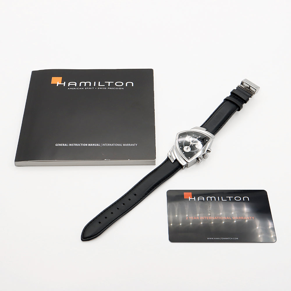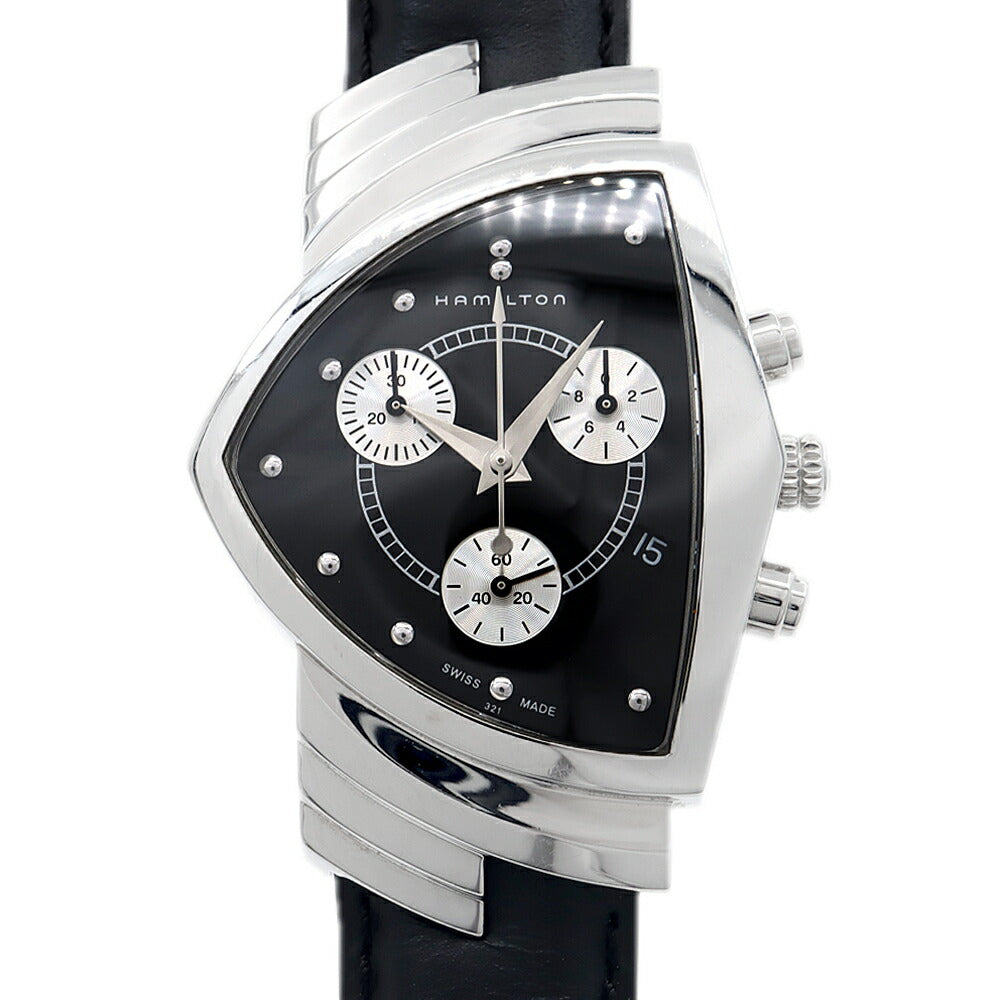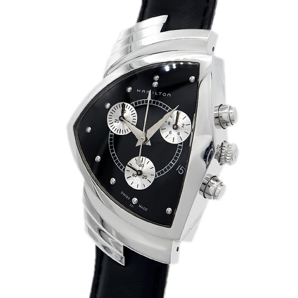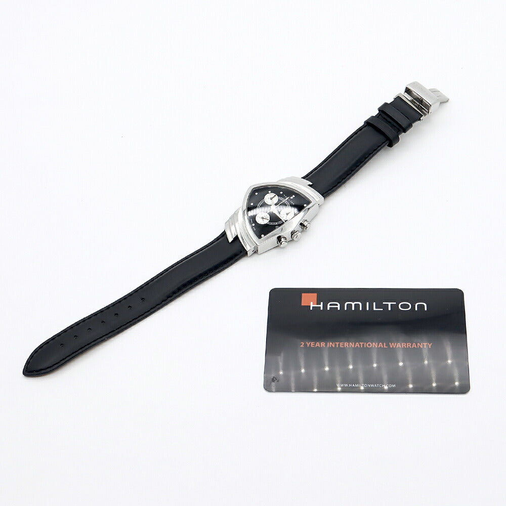 電池交換済 HAMILTON ハミルトン ベンチュラ クロノグラフ H244121 デイト スモールセコンド 黒 ブラック SS ステンレス 純正ベルト 純正尾錠 メンズ クォーツ【6ヶ月保証】【腕時計】【中古】