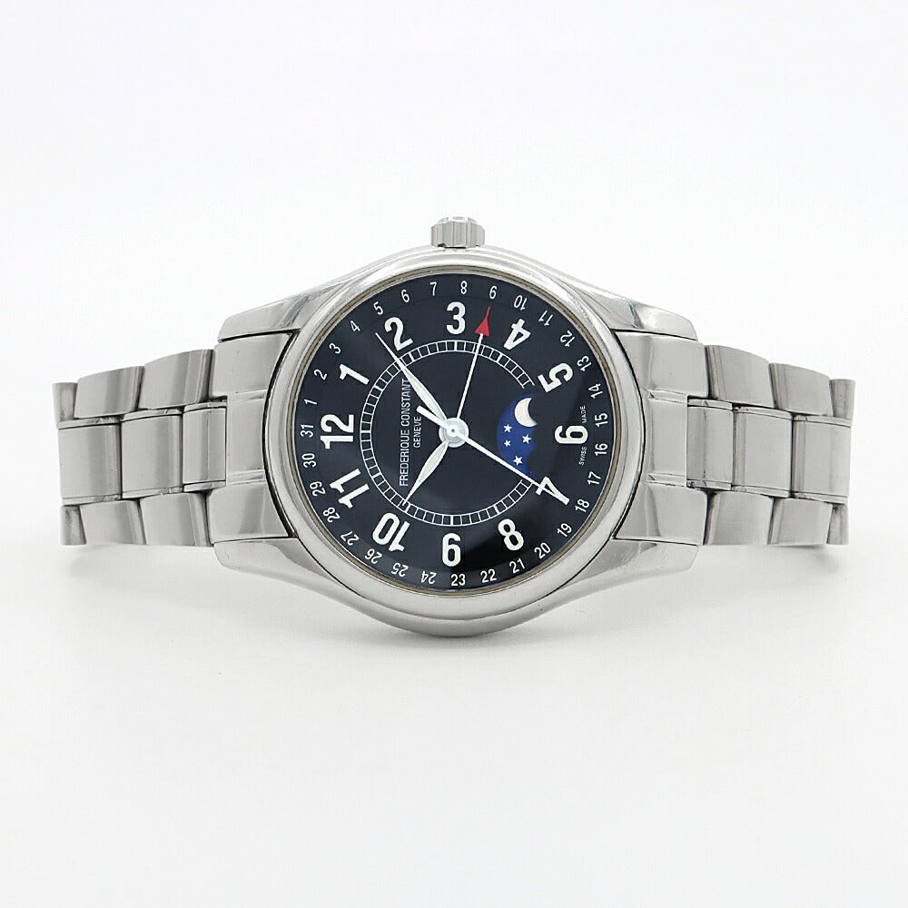 内部点検済 FREDERIQUE CONSTANT フレデリックコンスタント インデックス ムーンタイマー FC-330/335X6B4/6 デイト ムーンフェイズ 裏スケ 黒 ブラック SS ステンレス メンズ 自動巻き【6ヶ月保証】【腕時計】【中古】