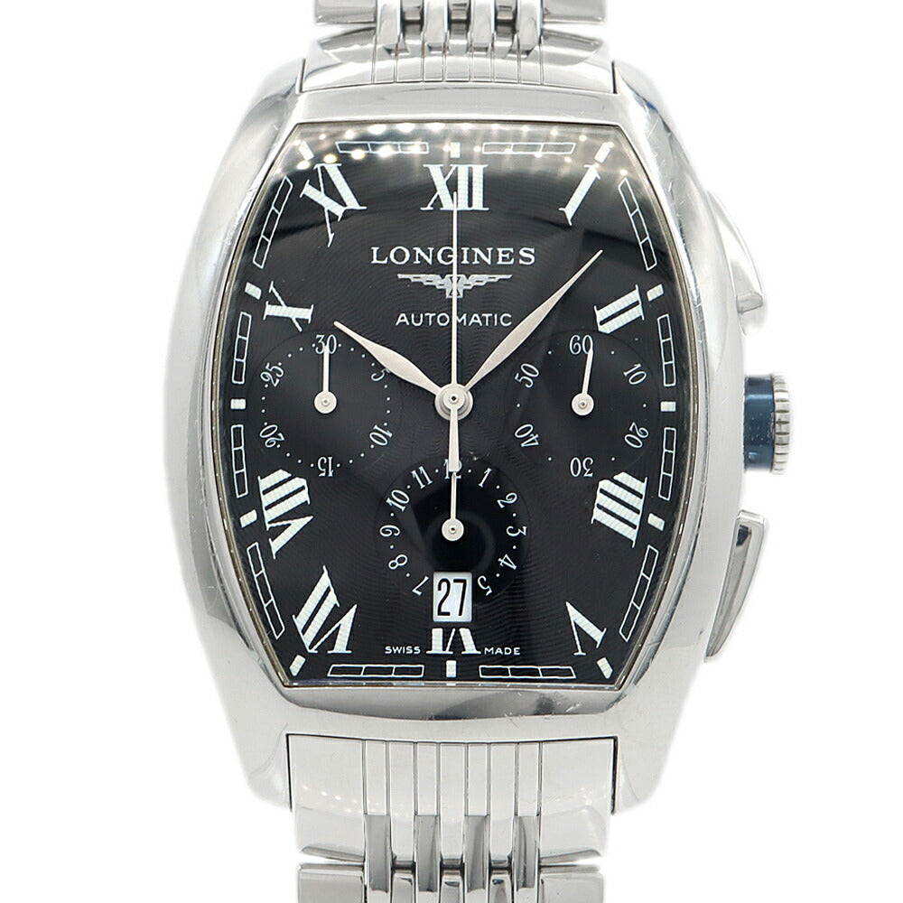内部点検済 LONGINES ロンジン エヴィデンツァ L2.643.4 クロノグラフ デイト 30m防水 黒 ブラック SS ステンレス メンズ 自動巻き【6ヶ月保証】【腕時計】【中古】