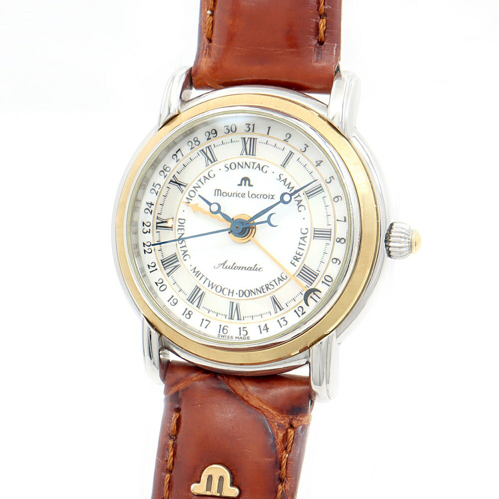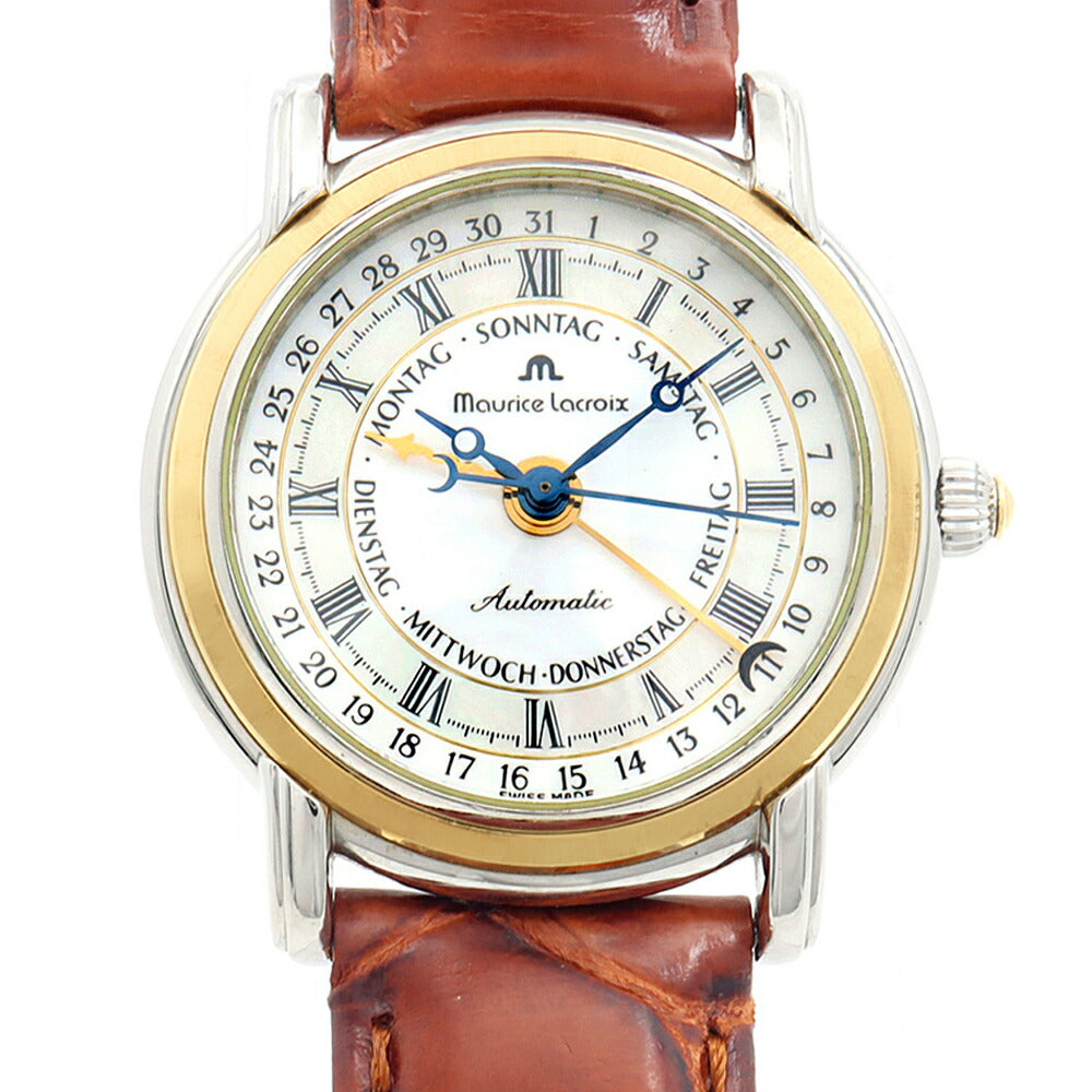 MAURICE LACROIX モーリスラクロア マスターピース ファイブハンズ 27294 デイデイト 50m防水 裏スケ 白 ホワイトシェル YGP イエローゴールド SS ステンレス 純正ベルト 純正尾錠 メンズ 自動巻き【6ヶ月保証】【腕時計】【中古】