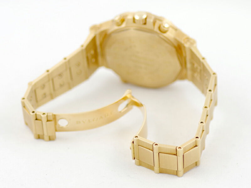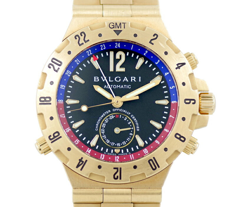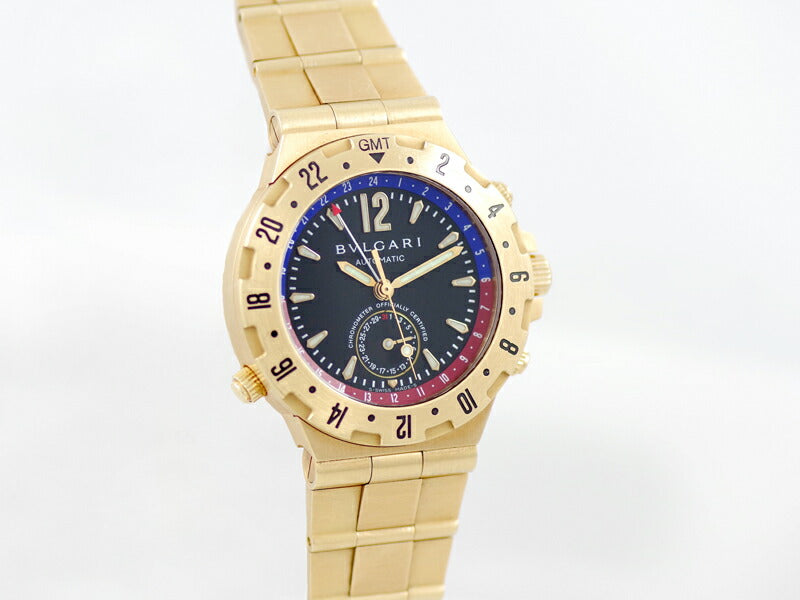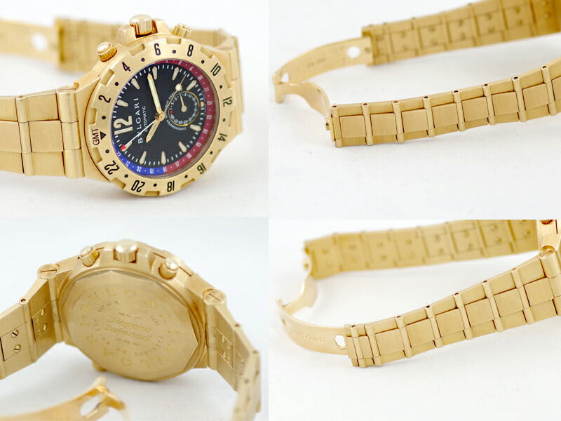 内部点検済 BVLGARI ブルガリ ディアゴノ プロフェッショナルGMT GMT40G 金無垢 デイト ブラック 黒 文字盤 K18 YG イエローゴールド メンズ 自動巻き【6ヶ月保証】【腕時計】【中古】