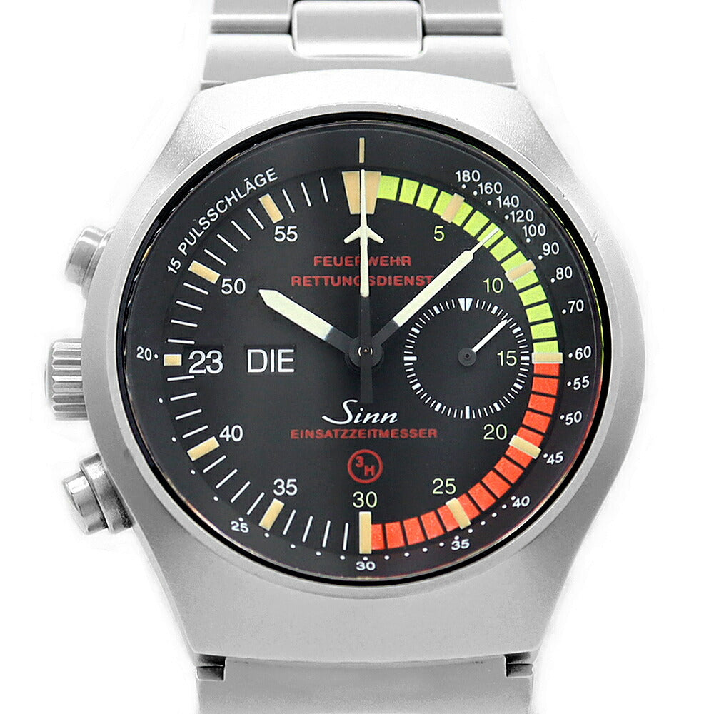 SINN ジン レマニア5100 ドイツ消防救急部隊用 デイデイト レフティ 15.EZM4 クロノグラフ 黒 ブラック SS ステンレス メンズ 自動巻き【6ヶ月保証】【腕時計】【中古】