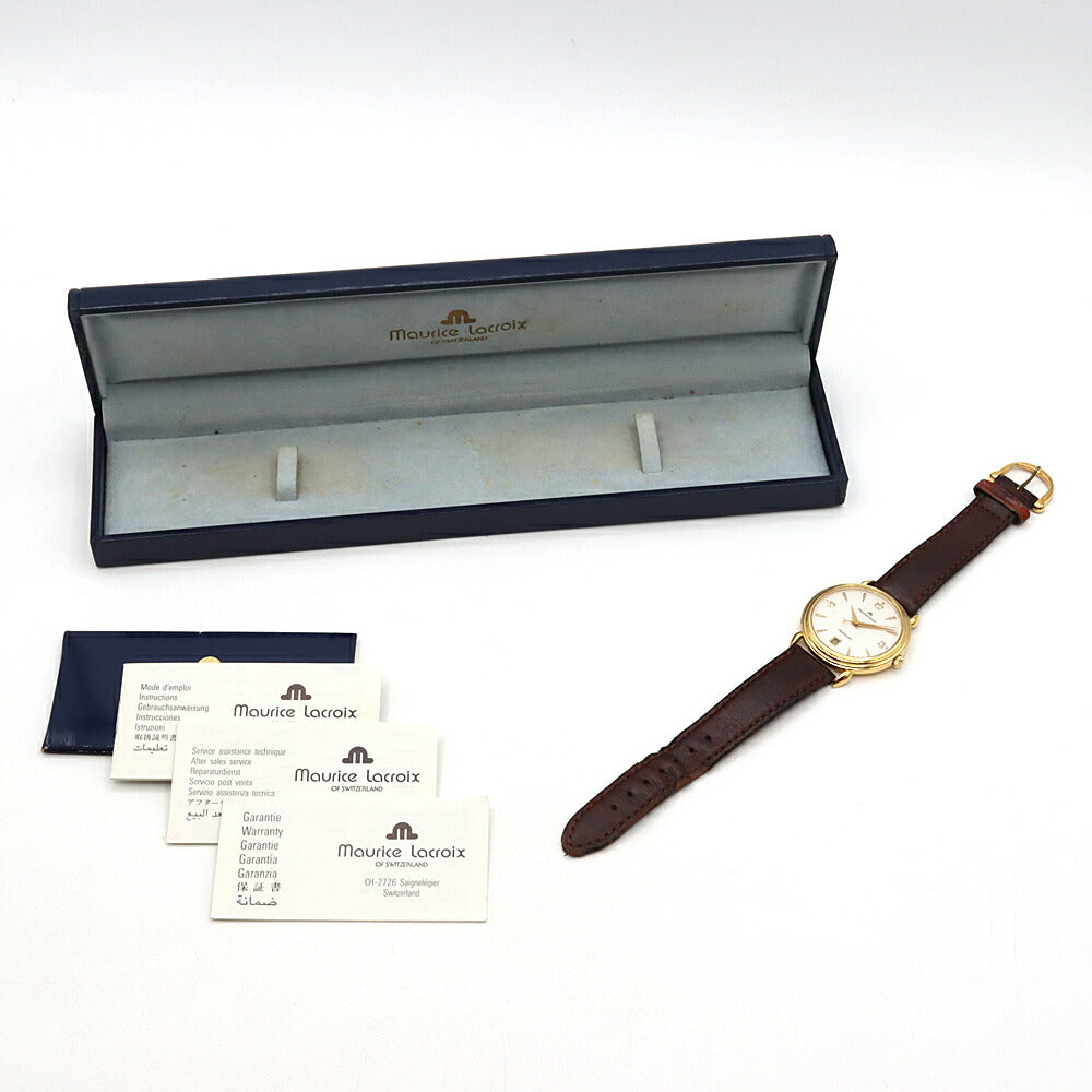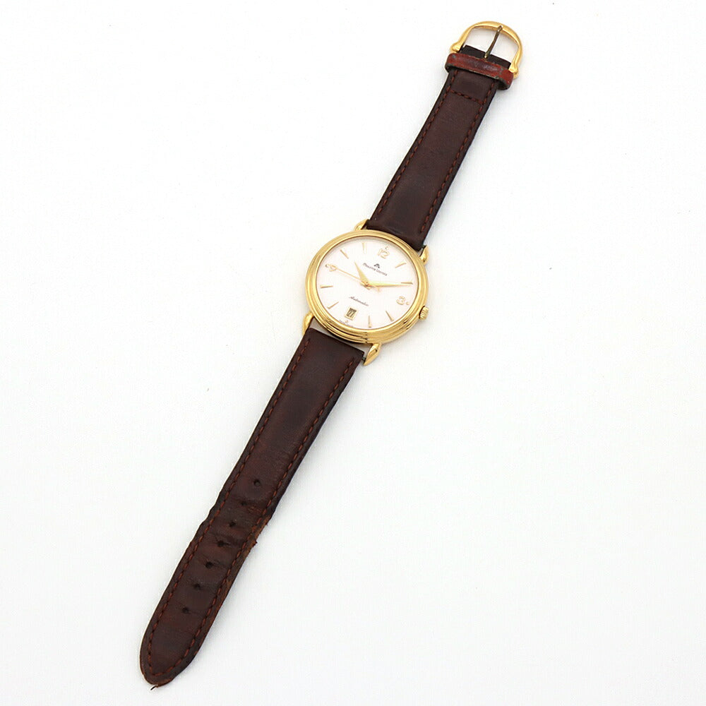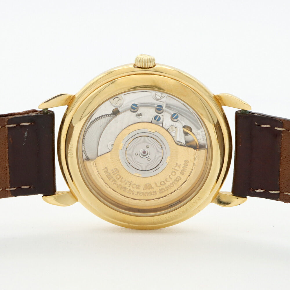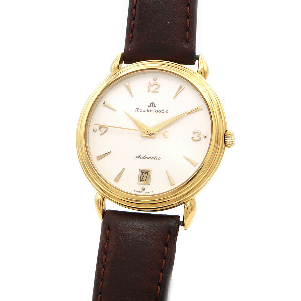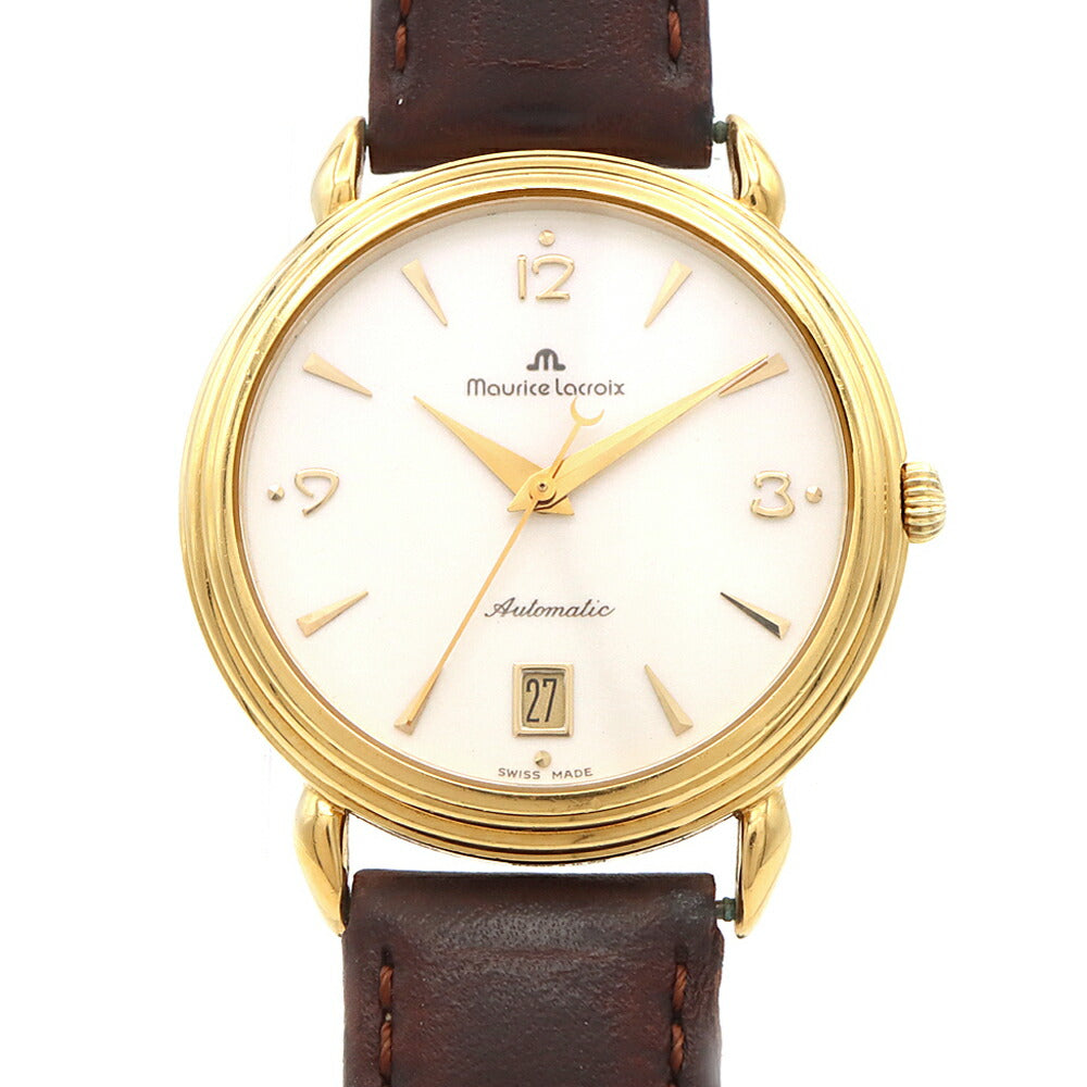 MAURICE LACROIX モーリスラクロア 11407 デイト 裏スケ 白 ホワイト YGP イエローゴールド 純正尾錠 メンズ 自動巻き【6ヶ月保証】【腕時計】【中古】