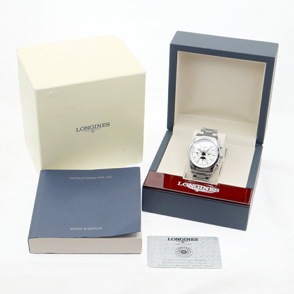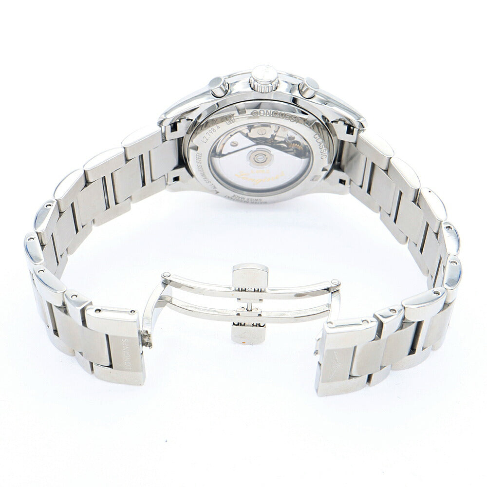 LONGINES ロンジン コンクエスト クラシック クロノグラフ L2.798.4.72.6 トリプルカレンダー ムーンフェイズ 裏スケ 50m防水 シルバー SS ステンレス メンズ 自動巻き【6ヶ月保証】【腕時計】【中古】