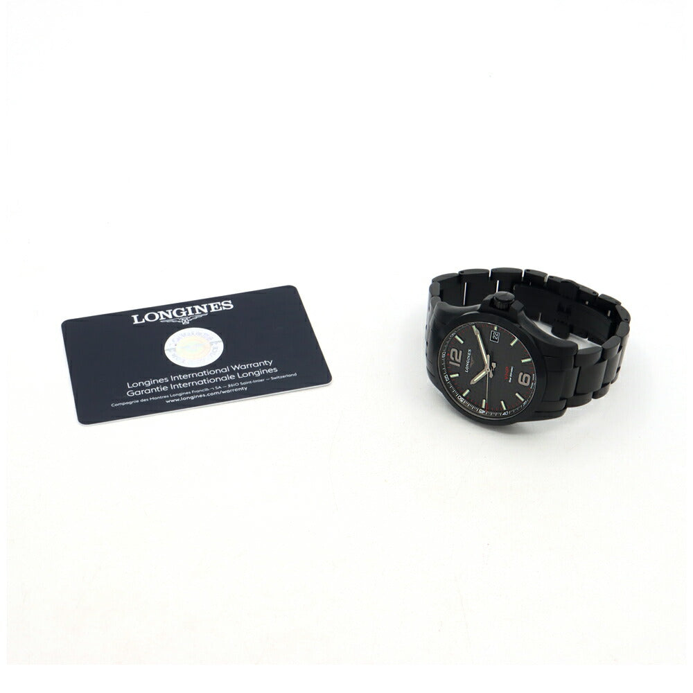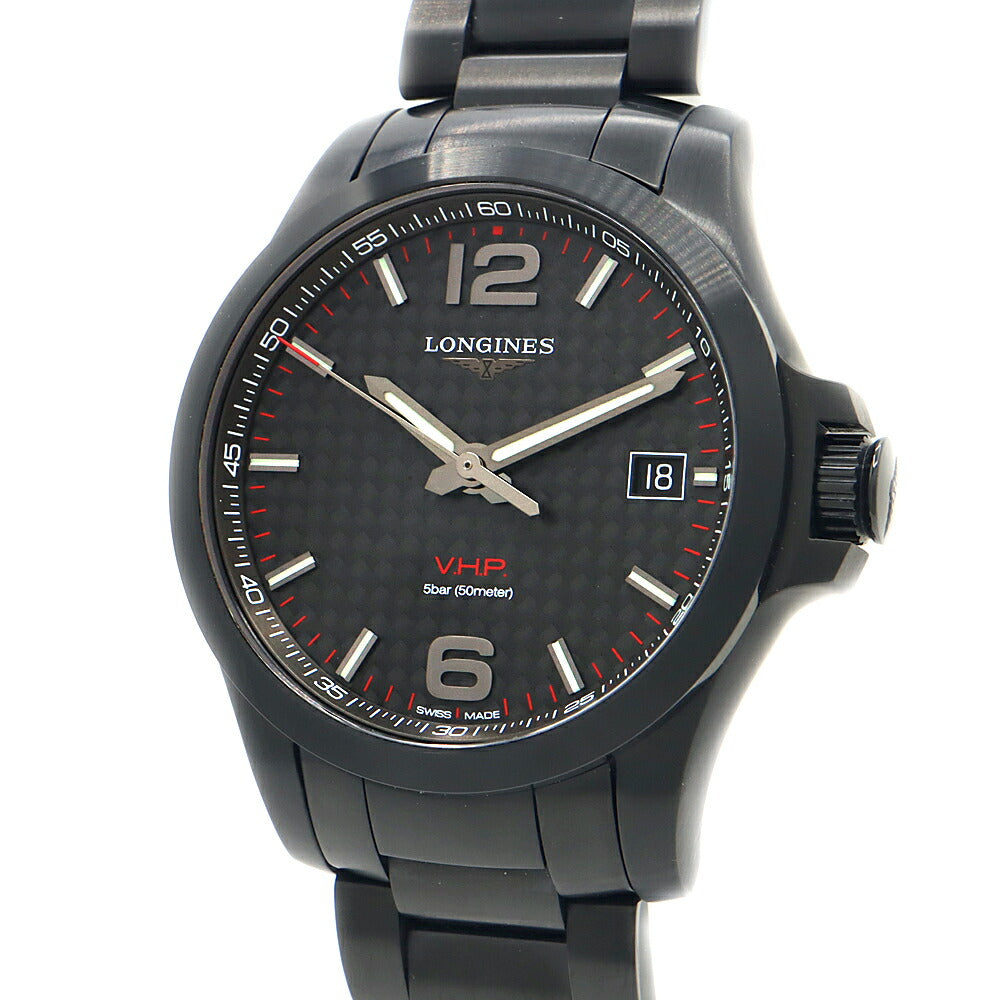 電池交換済 LONGINES ロンジン コンクエスト VHP L3.716.2 デイト 50m防水 パーペチュアルカレンダー 黒 ブラック SS ステンレス メンズ クォーツ【6ヶ月保証】【腕時計】【中古】