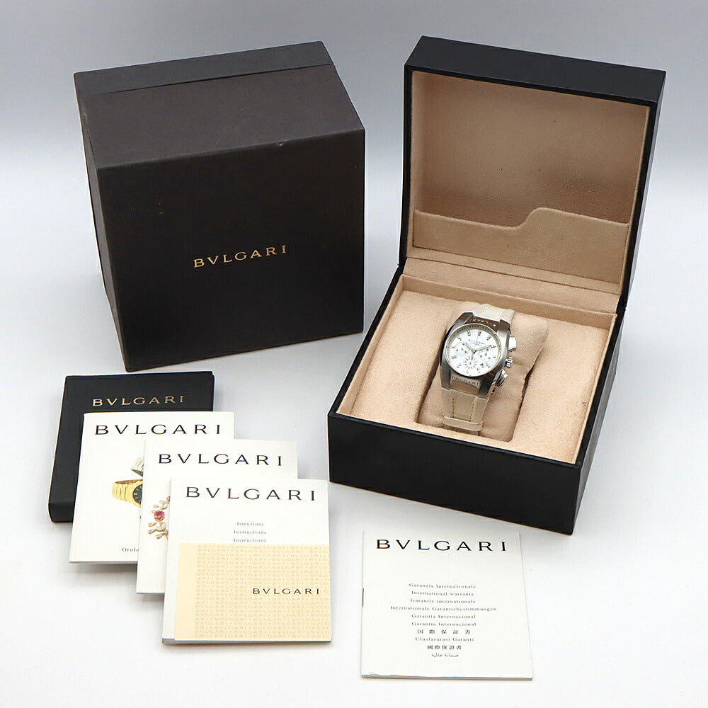 BVLGARI ブルガリ エルゴン クロノグラフ EG35SCH ダイヤモンド 21Pダイヤ デイト 白 ホワイトシェル SS ステンレス 純正ベルト 純正尾錠 メンズ レディース ボーイズ 自動巻き【6ヶ月保証】【腕時計】【中古】