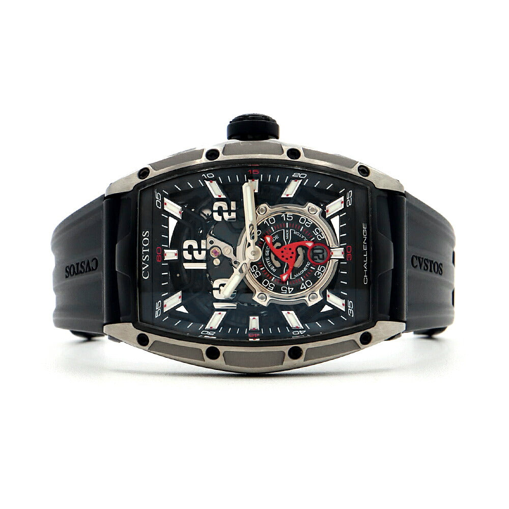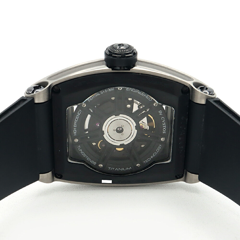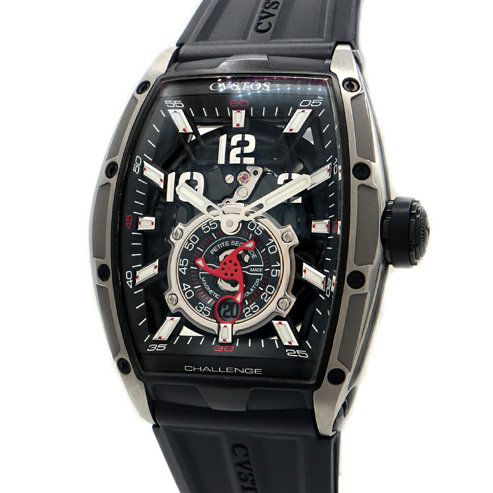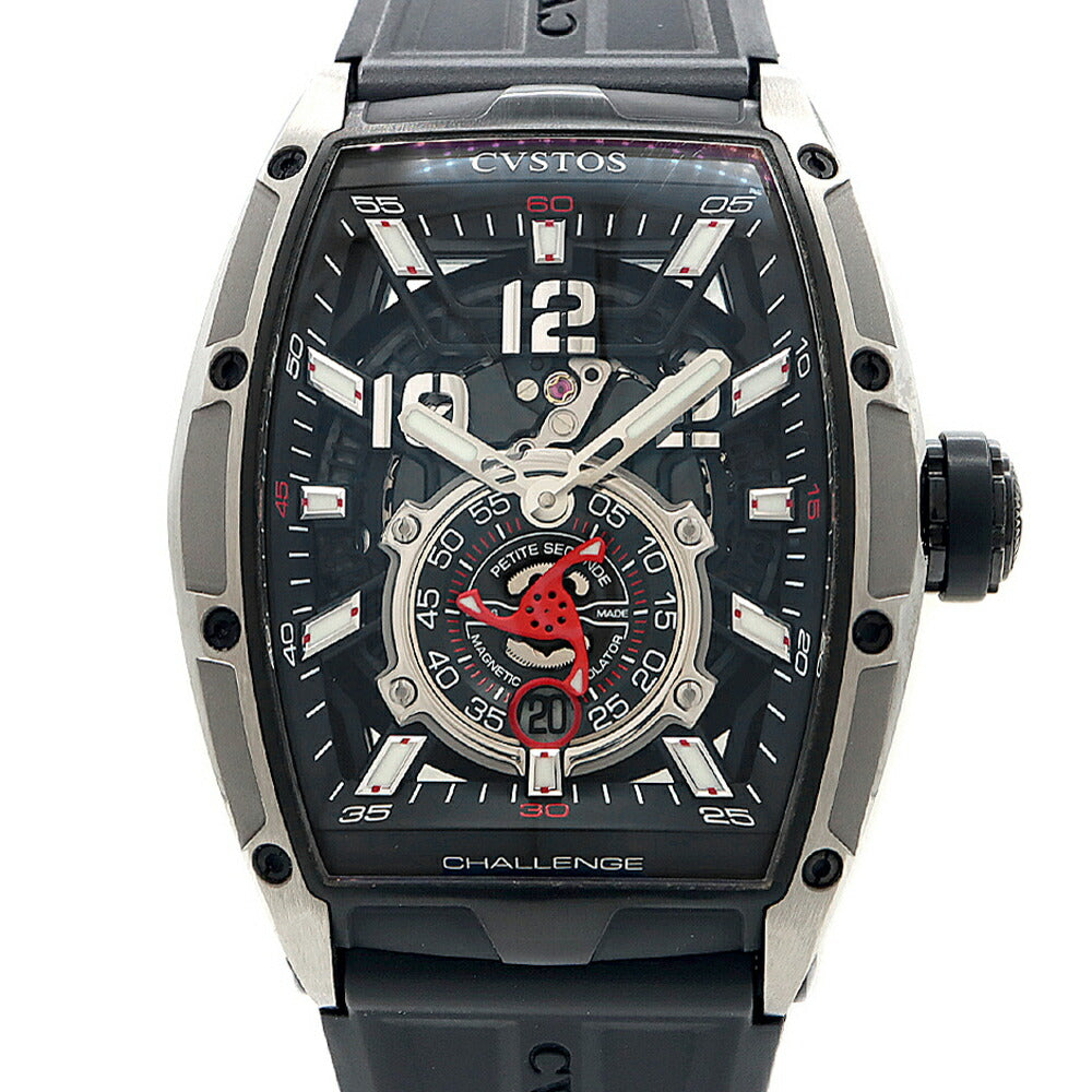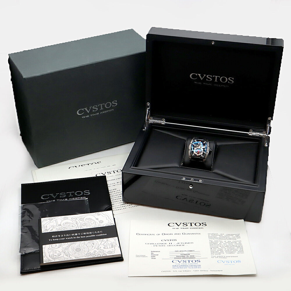 内部点検済 CVSTOS クストス チャレンジ ジェットライナーII プティセコンド CVT-JET2-PS デイト 100m防水 スケルトン 黒 ブラック Ti チタン 純正ベルト 純正尾錠 メンズ 自動巻き【6ヶ月保証】【腕時計】【中古】