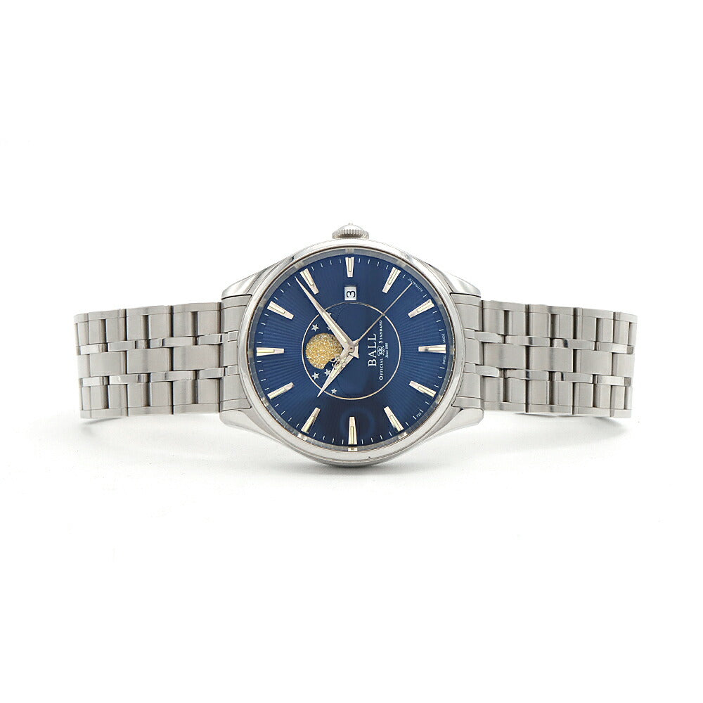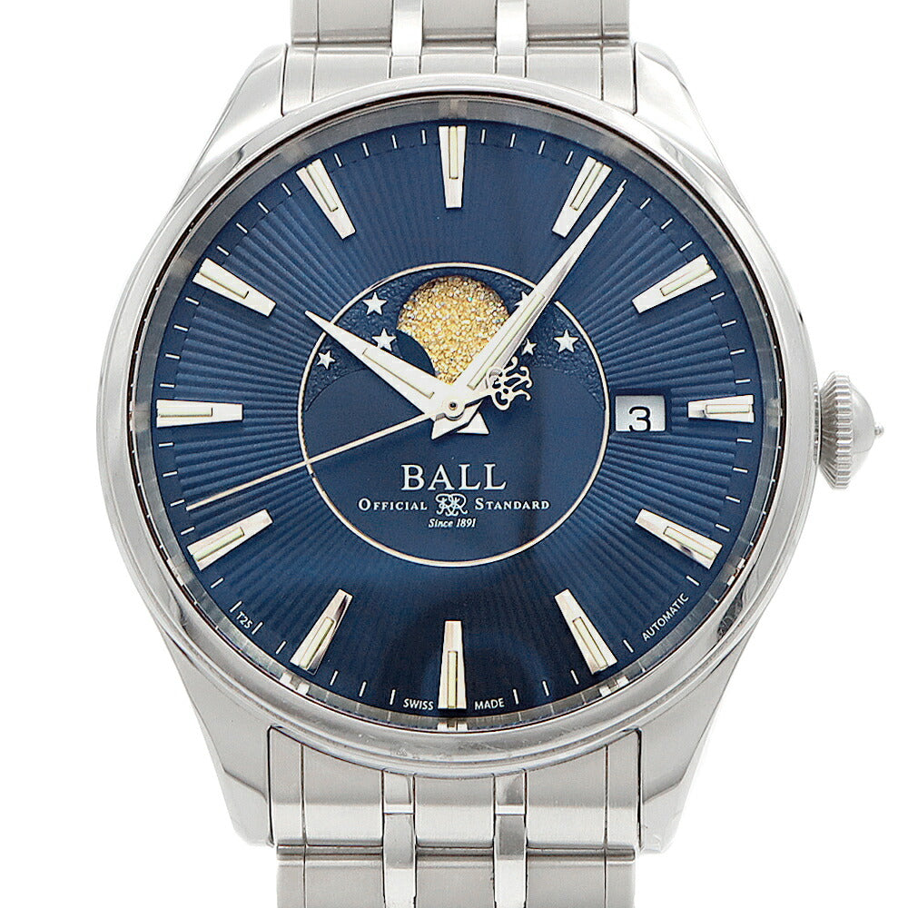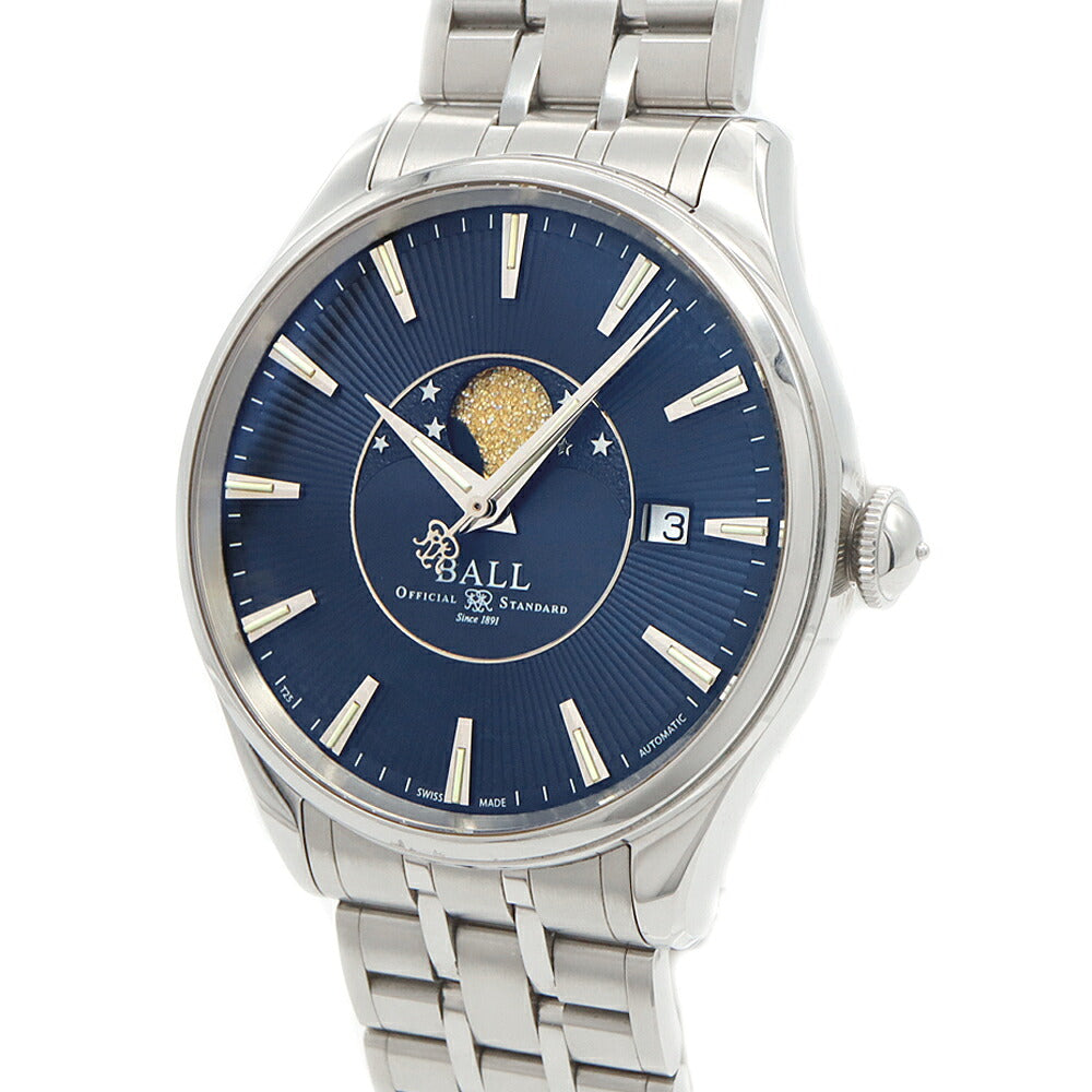 BALL ボール ウォッチ トレインマスター ムーンフェイズ NM3082D-SJ-BE デイト 裏スケ 50m防水 青 ブルー SS ステンレス メンズ 自動巻き【6ヶ月保証】【腕時計】【中古】