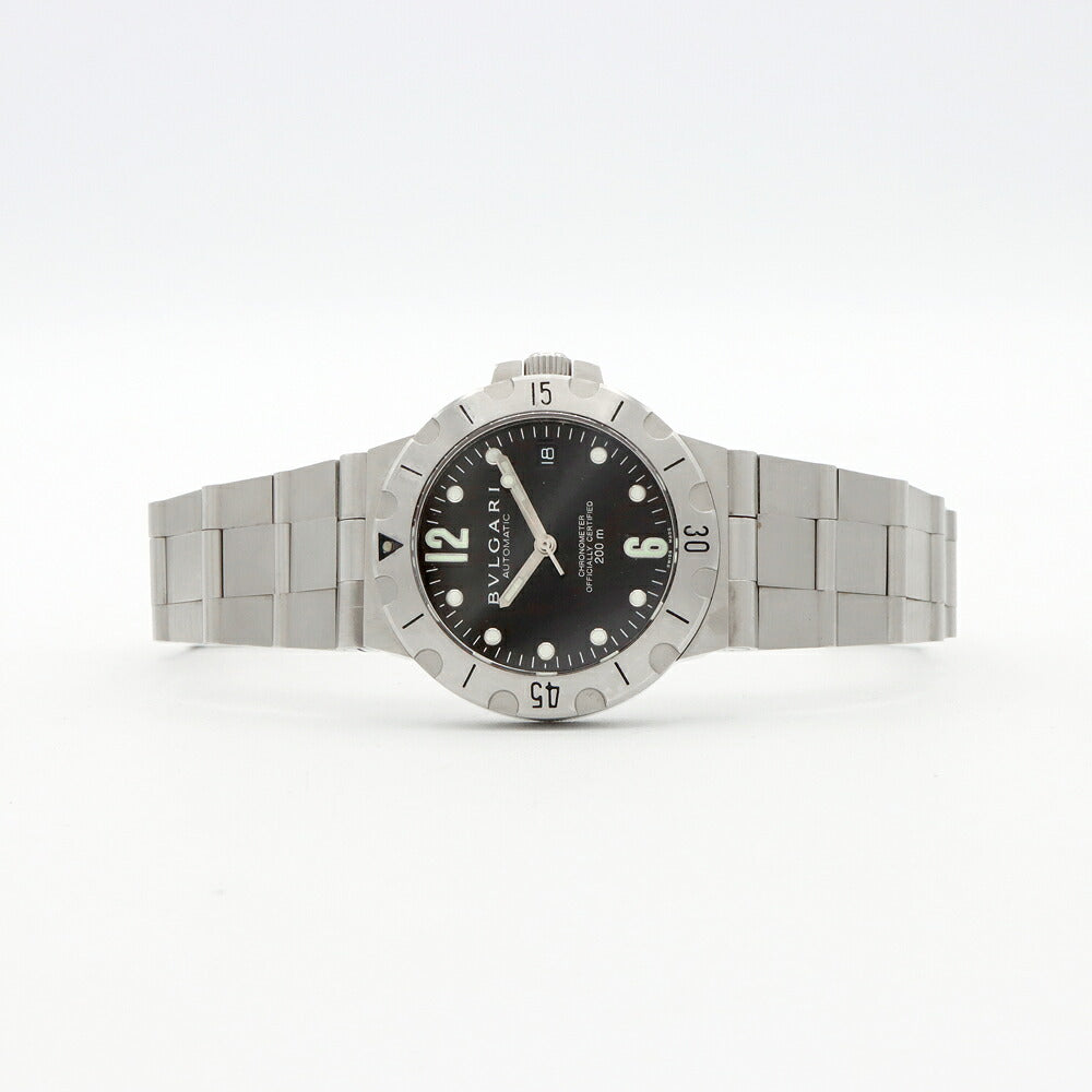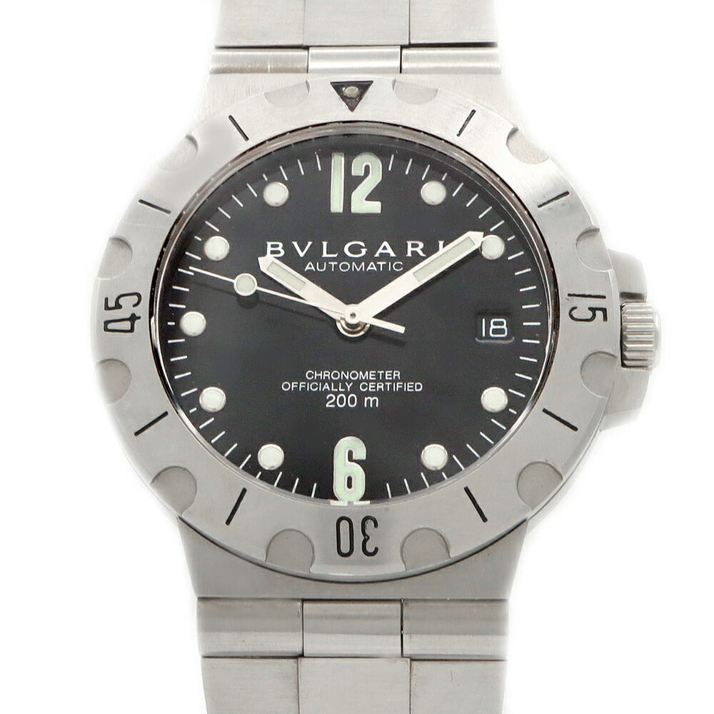 内部点検済 BVLGARI ブルガリ ディアゴノ スクーバ SD38S デイト 200m防水 黒 ブラック SS ステンレス メンズ 自動巻き【6ヶ月保証】【腕時計】【中古】